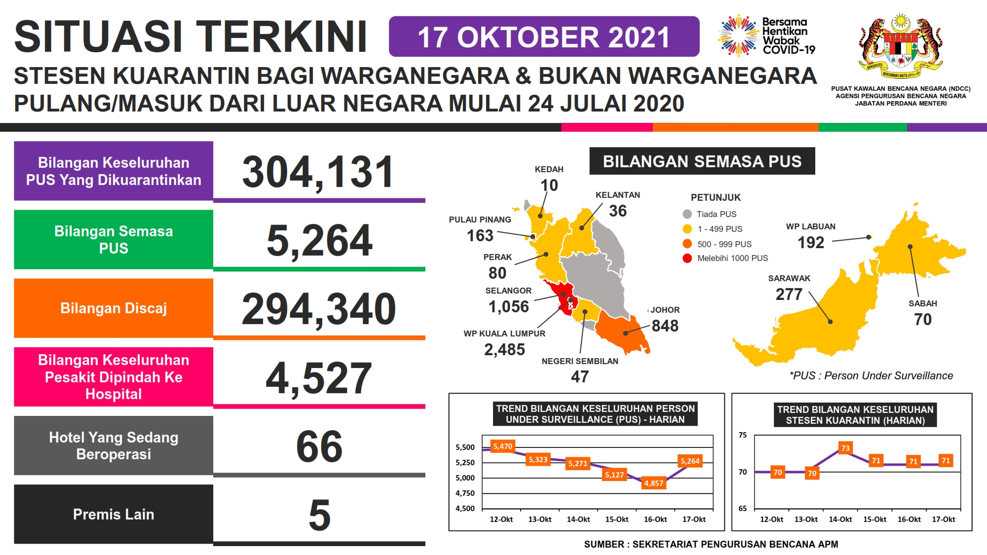 Situasi Terkini Stesen Kuarantin Bagi Warganegara Dan Bukan Warganegara Pulang/Masuk Dari Luar Negara 17/10/2021 Aiman Siaran Media 17 Oktober 2021 Jumlah paparan: 717 Rating: ( 0 Rating ) Sila beri kadar Undi 1 Undi 2 Undi 3 Undi 4 Undi 5 Lihat / Muat Turun PDF Facebook Twitter Seterusnya Seterusnya