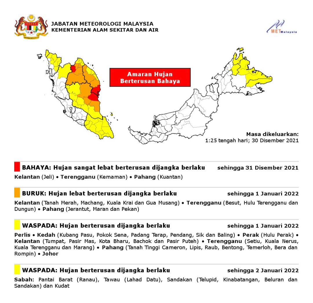 Amaran Hujan Berterusan Bahaya 30/12/2021 0125 PM Aiman Cuaca 30 Disember 2021 Jumlah paparan: 1161 Rating: ( 0 Rating ) Sila beri kadar Undi 1 Undi 2 Undi 3 Undi 4 Undi 5 Lihat / Muat Turun JPG Facebook Twitter Seterusnya Seterusnya