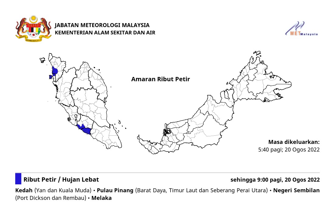 Amaran Ribut Petir 20/08/2022 0540 AM Norbazliah Cuaca 20 Ogos 2022 Jumlah paparan: 253 Rating: ( 0 Rating ) Sila beri kadar Undi 1 Undi 2 Undi 3 Undi 4 Undi 5 Lihat / Muat Turun JPG Facebook Twitter Seterusnya Seterusnya