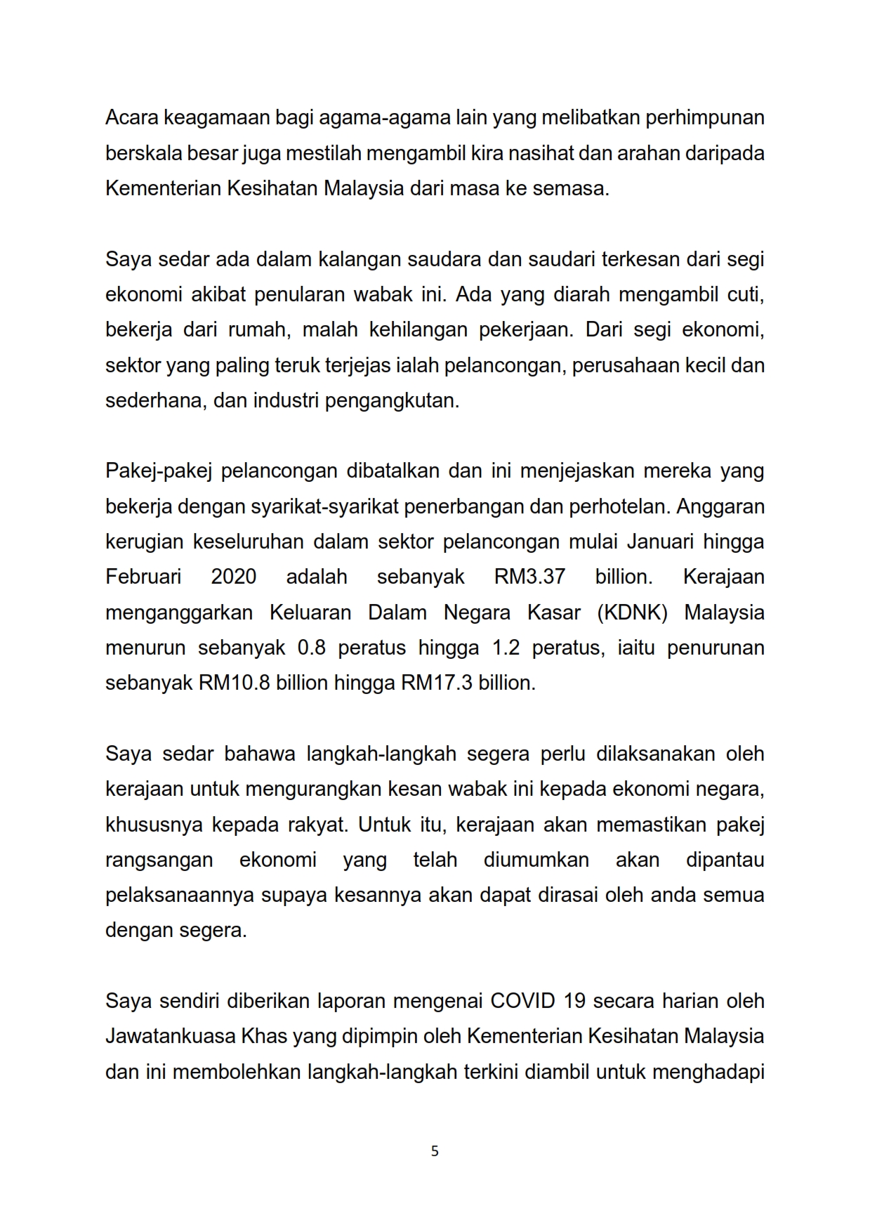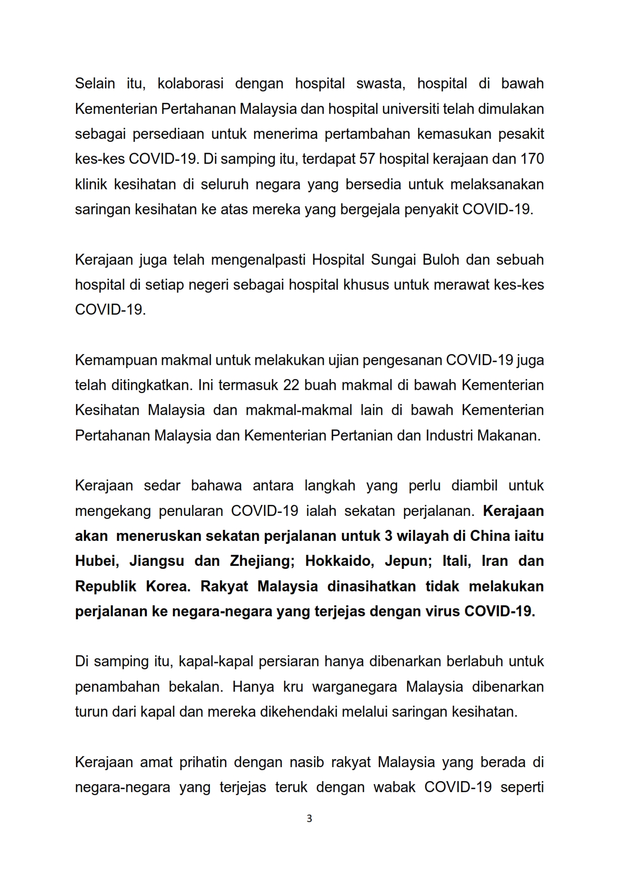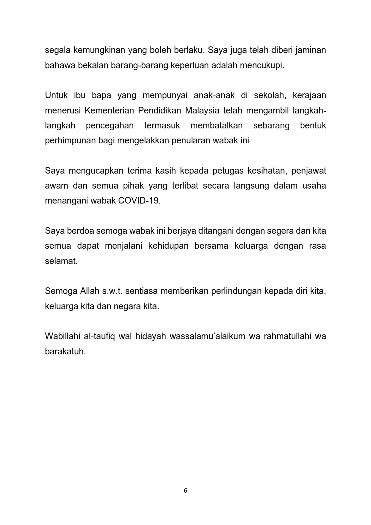 Perutusan Perdana Menteri Berkenaan COVID-19 13/03/2020 Asrul Siaran Media 13 Mac 2020 Jumlah paparan: 1304 Rating: ( 0 Rating ) Sila beri kadar Undi 1 Undi 2 Undi 3 Undi 4 Undi 5 Lihat / Muat Turun PDF Facebook Twitter Seterusnya Seterusnya