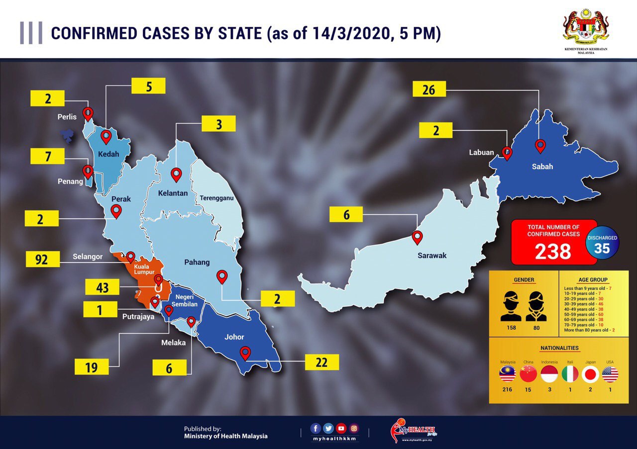 COVID-19 - Kes Sah Mengikut Negeri Di Malaysia 14/03/2020 Asrul Siaran Media 14 Mac 2020 Jumlah paparan: 1409 Rating: ( 0 Rating ) Sila beri kadar Undi 1 Undi 2 Undi 3 Undi 4 Undi 5 Lihat / Muat Turun JPG Facebook Twitter Seterusnya Seterusnya