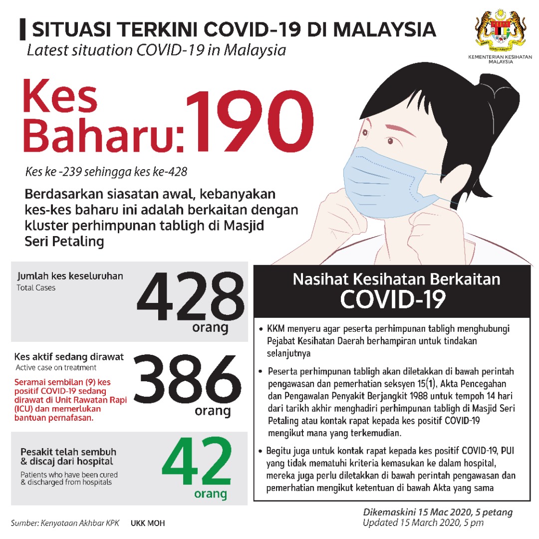 COVID-19 - Situasi Semasa 15/03/2020 0500 PM Asrul Siaran Media 15 Mac 2020 Jumlah paparan: 938 Rating: ( 0 Rating ) Sila beri kadar Undi 1 Undi 2 Undi 3 Undi 4 Undi 5 Lihat / Muat Turun JPG Facebook Twitter Seterusnya Seterusnya