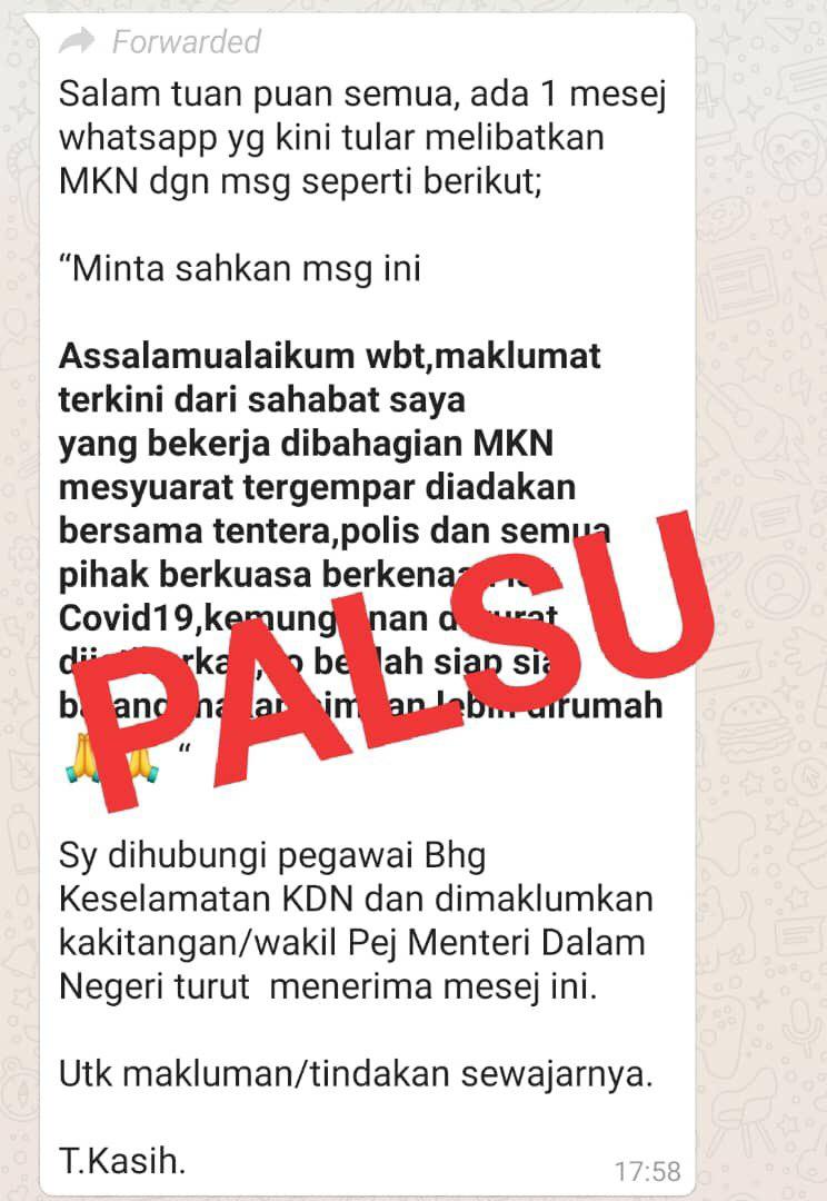 COVID-19 - Larangan Penyebaran Berita Palsu 15/03/2020 Asrul Nasihat 15 Mac 2020 Jumlah paparan: 1082 Rating: ( 0 Rating ) Sila beri kadar Undi 1 Undi 2 Undi 3 Undi 4 Undi 5 Lihat / Muat Turun JPG 1 Lihat / Muat Turun JPG 2 Facebook Twitter Seterusnya Seterusnya