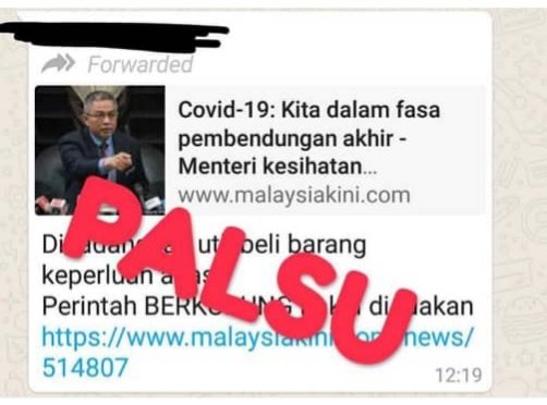 COVID-19 - Larangan Penyebaran Berita Palsu 16/03/2020 Asrul Nasihat 16 Mac 2020 Jumlah paparan: 1085 Rating: ( 0 Rating ) Sila beri kadar Undi 1 Undi 2 Undi 3 Undi 4 Undi 5 Lihat / Muat Turun JPG Facebook Twitter Seterusnya Seterusnya