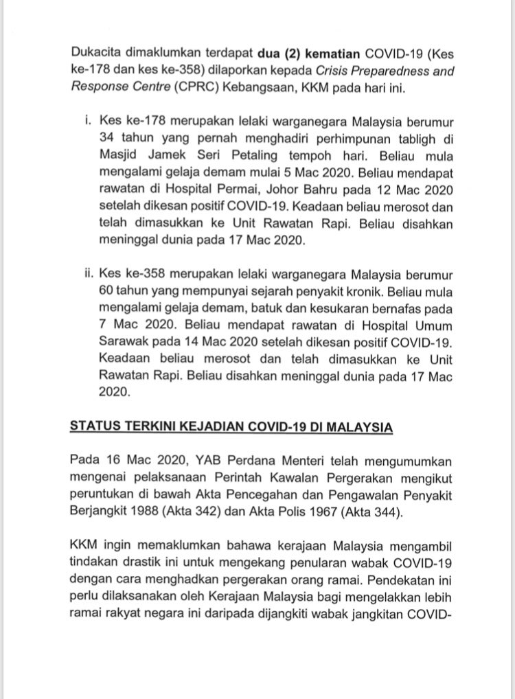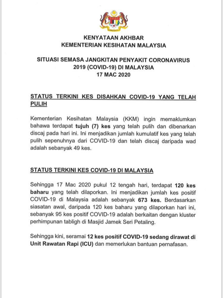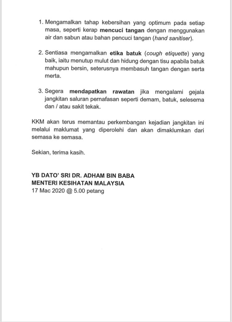 Kenyataan Akhbar Menteri Kesihatan Malaysia 17/03/2020 Asrul Siaran Media 17 Mac 2020 Jumlah paparan: 1130 Rating: ( 0 Rating ) Sila beri kadar Undi 1 Undi 2 Undi 3 Undi 4 Undi 5 Facebook Twitter Seterusnya Seterusnya