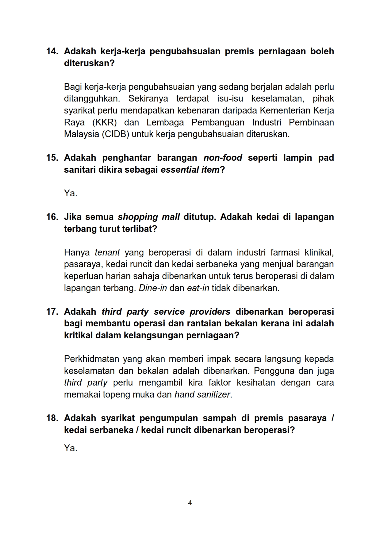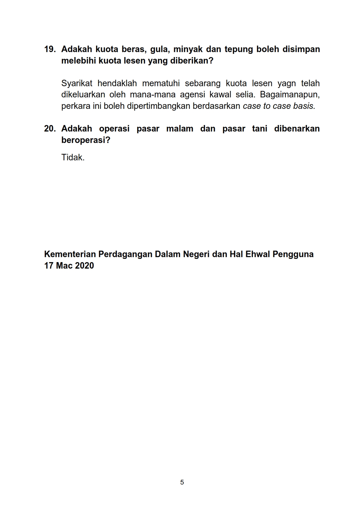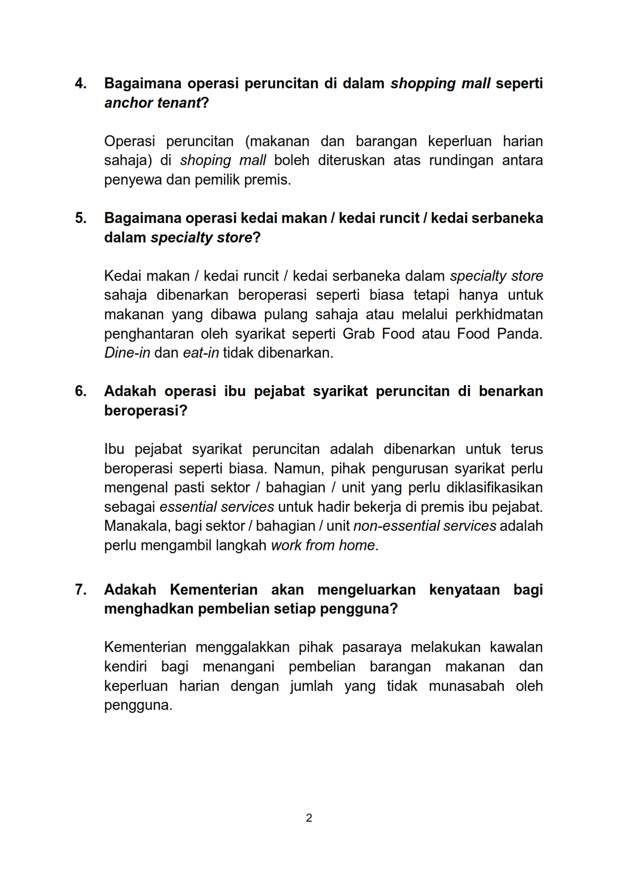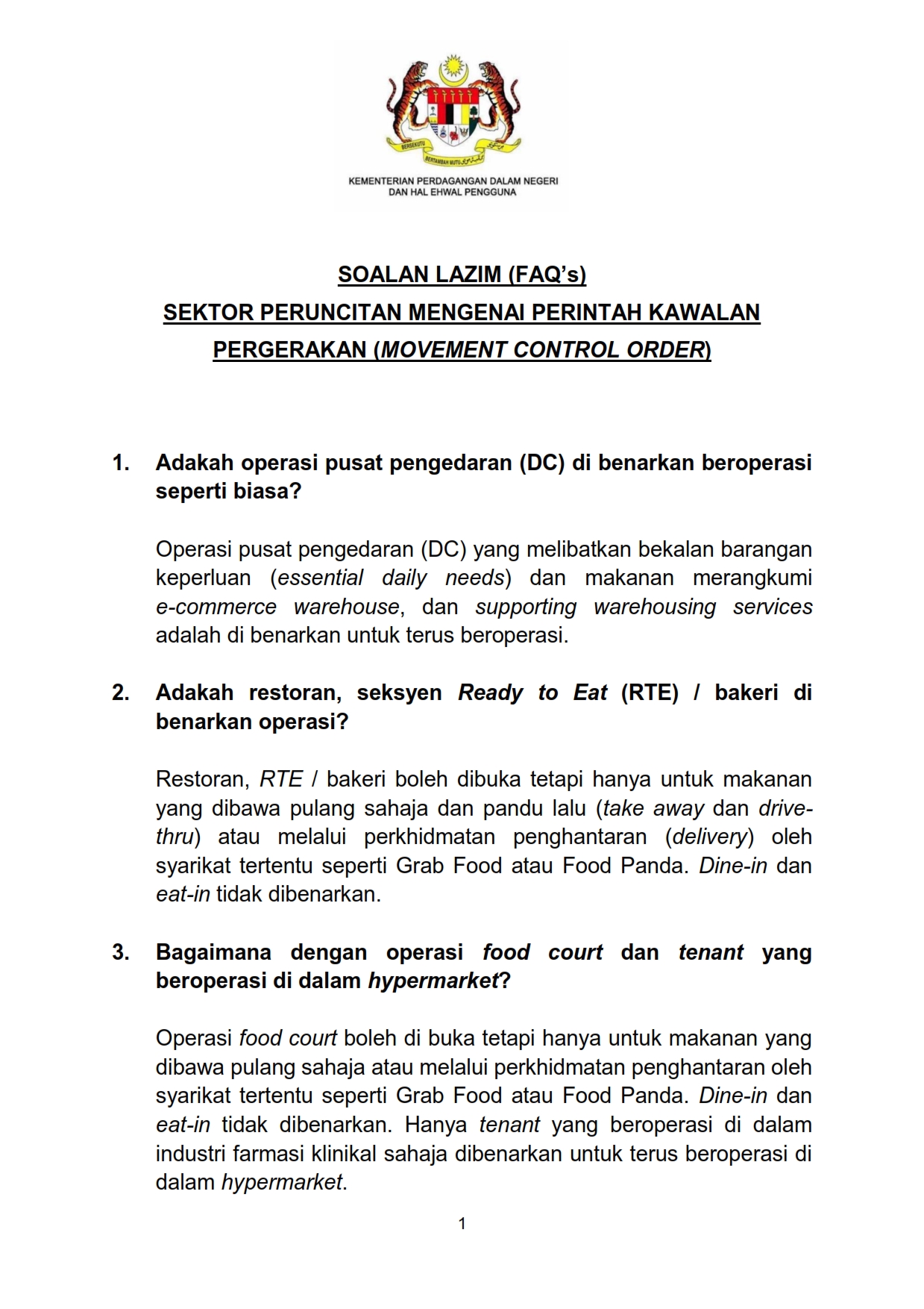 Soalan Lazim FAQ Sektor Peruncitan Mengenai Perintah Kawalan Pergerakan 17/03/2020 Aiman FAQ 17 Mac 2020 Jumlah paparan: 977 Rating: ( 0 Rating ) Sila beri kadar Undi 1 Undi 2 Undi 3 Undi 4 Undi 5 Lihat / Muat Turun PDF Muat Turun JPG 1 Muat Turun JPG 2 Facebook Twitter Seterusnya Seterusnya