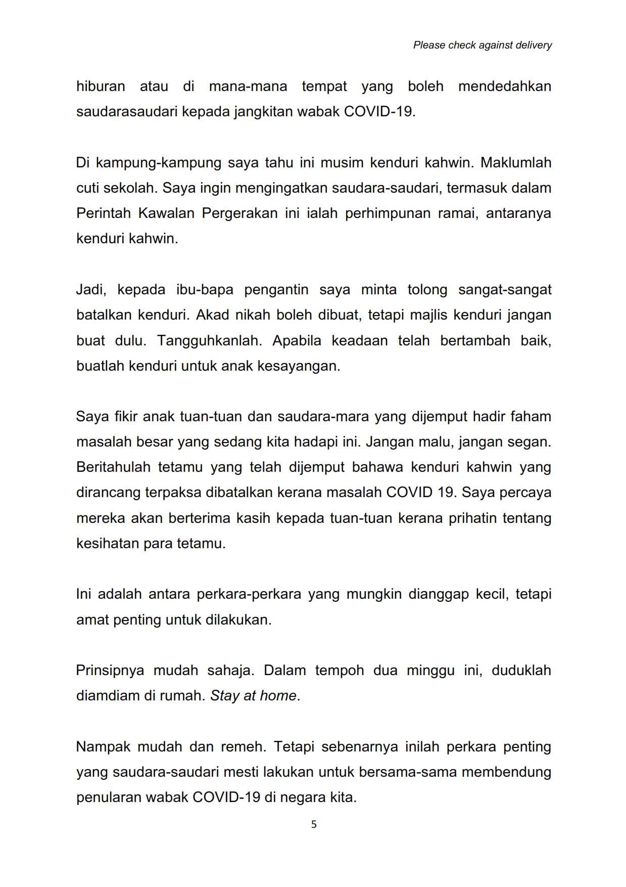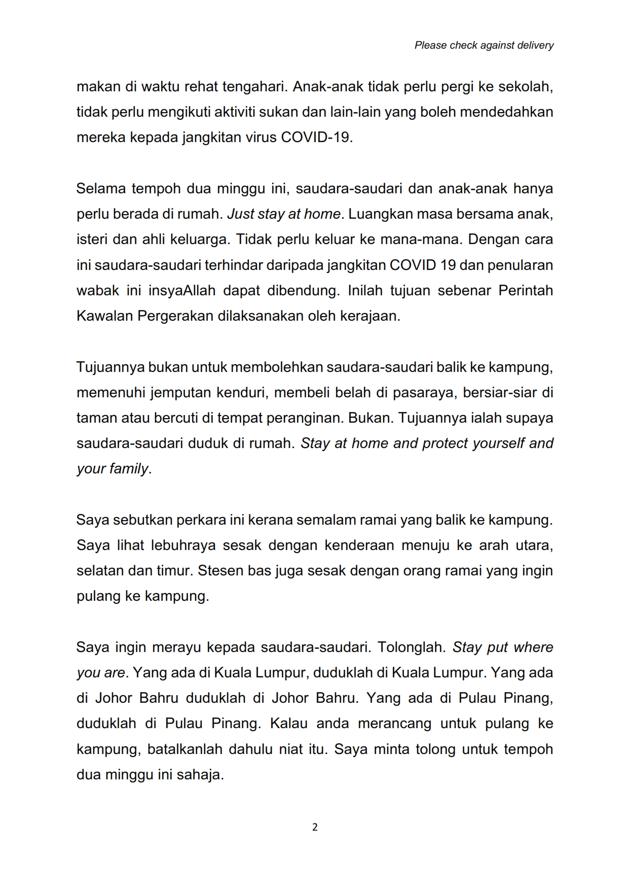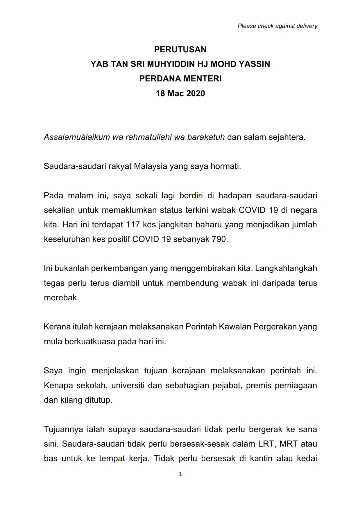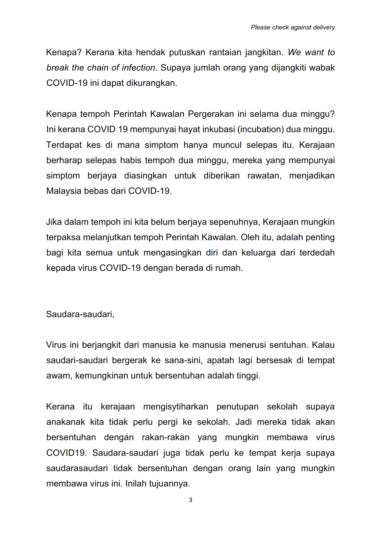 Perutusan Khas YAB Perdana Menteri Malaysia 18/03/2020 0900 PM Asrul Siaran Media 18 Mac 2020 Jumlah paparan: 899 Rating: ( 0 Rating ) Sila beri kadar Undi 1 Undi 2 Undi 3 Undi 4 Undi 5 Lihat / Muat Turun PDF Facebook Twitter Seterusnya Seterusnya