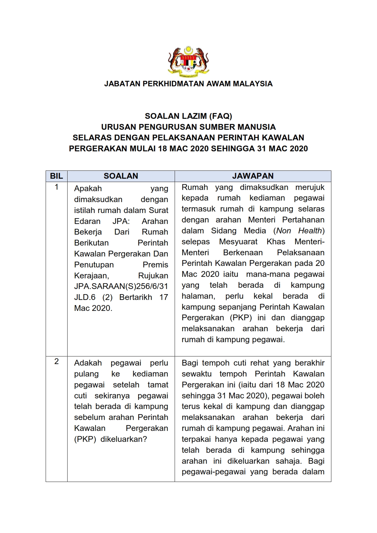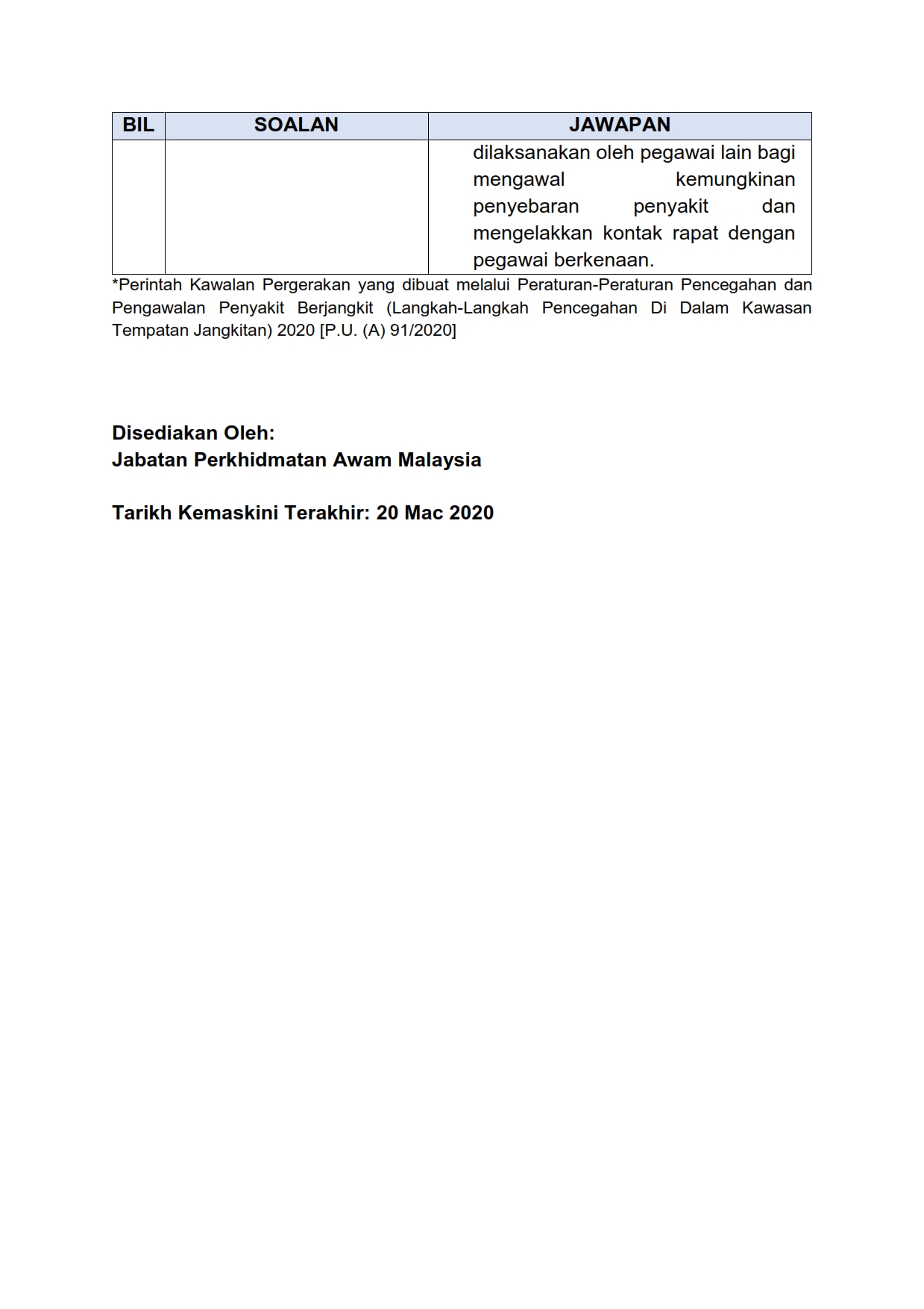 Soalan Lazim FAQ Mengenai Perintah Kawalan Pergerakan JPA 20/03/2020 Aiman FAQ 20 Mac 2020 Jumlah paparan: 1569 Rating: ( 0 Rating ) Sila beri kadar Undi 1 Undi 2 Undi 3 Undi 4 Undi 5 Lihat / Muat Turun PDF Facebook Twitter Seterusnya Seterusnya
