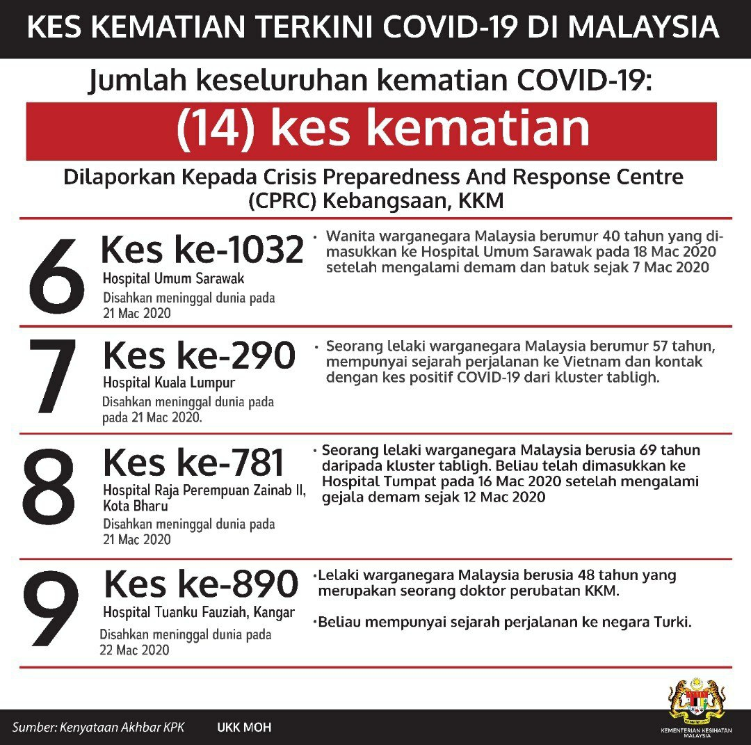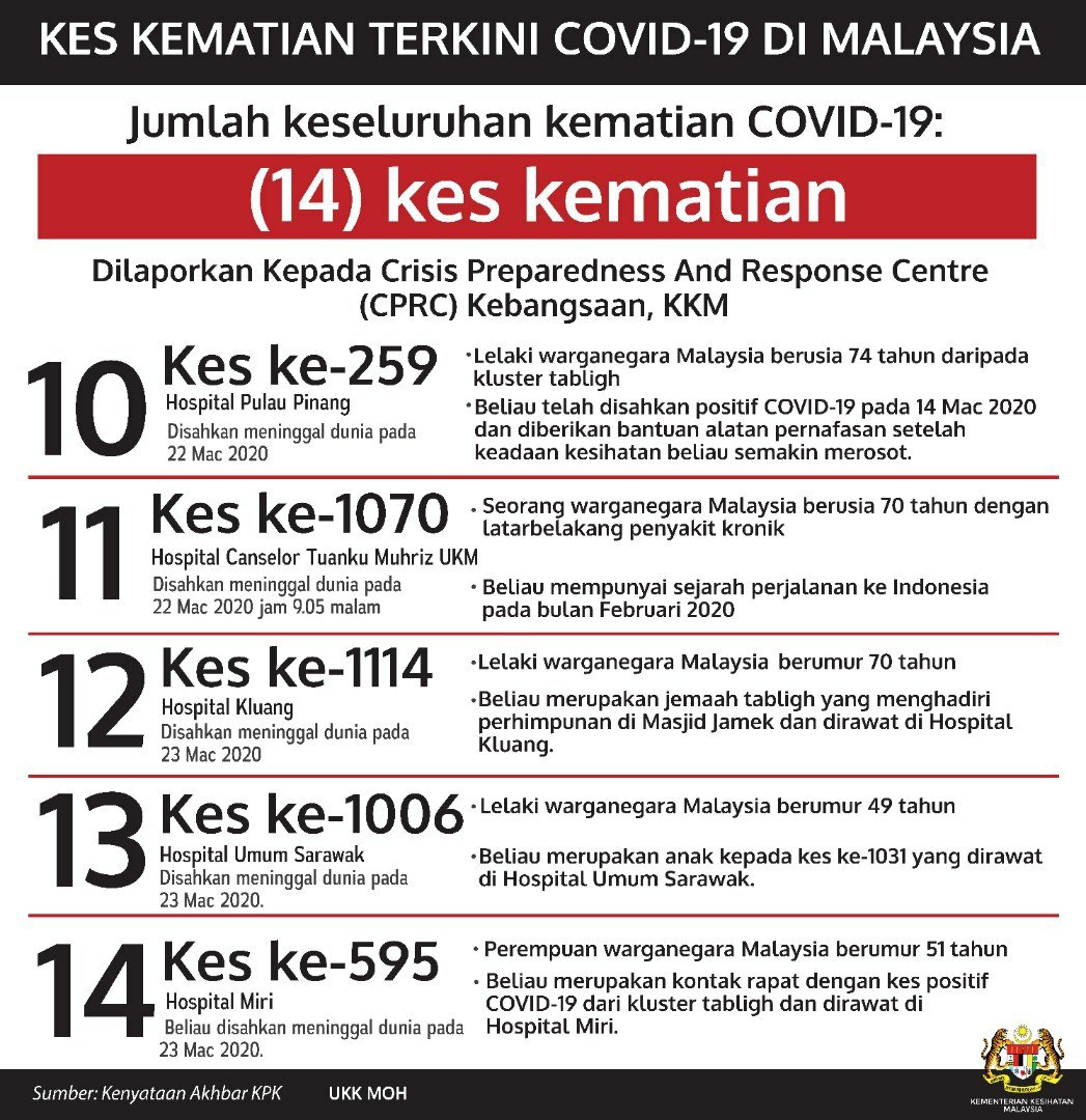 Jumlah Keseluruhan Kematian Akibat COVID-19 Di Malaysia 23/03/2020 Asrul Siaran Media 23 Mac 2020 Jumlah paparan: 1104 Rating: ( 0 Rating ) Sila beri kadar Undi 1 Undi 2 Undi 3 Undi 4 Undi 5 Facebook Twitter Seterusnya Seterusnya