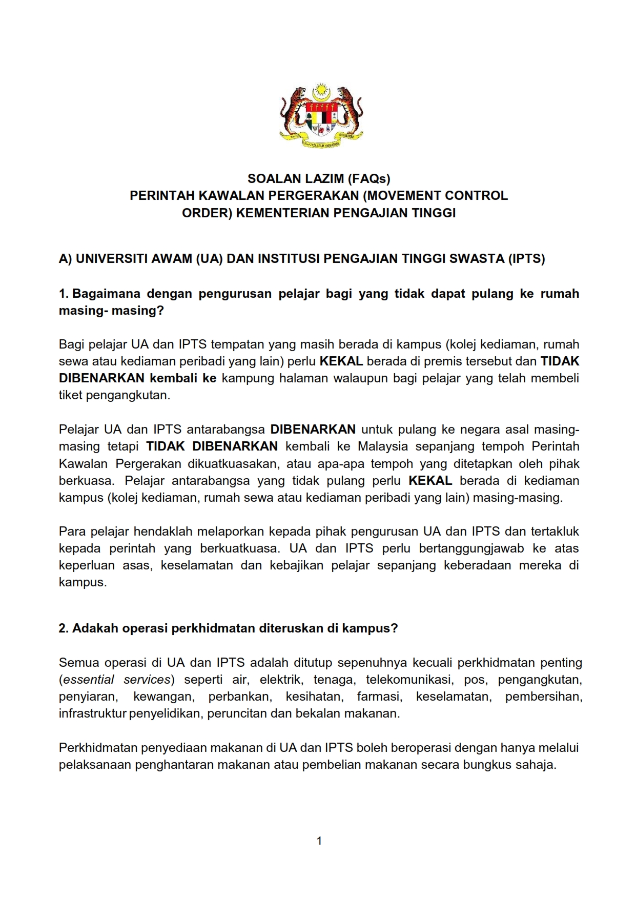 Soalan Lazim FAQ Berkaitan Perintah Kawalan Pergerakan Kementerian Pengajian Tinggi 21/03/2020 Aiman FAQ 21 Mac 2020 Jumlah paparan: 1135 Rating: ( 0 Rating ) Sila beri kadar Undi 1 Undi 2 Undi 3 Undi 4 Undi 5 /bencana2/images/ndcc/documents/covid19/faq/SIARAN_MEDIA_KKM_20200323_2.pdf Facebook Twitter Seterusnya Seterusnya