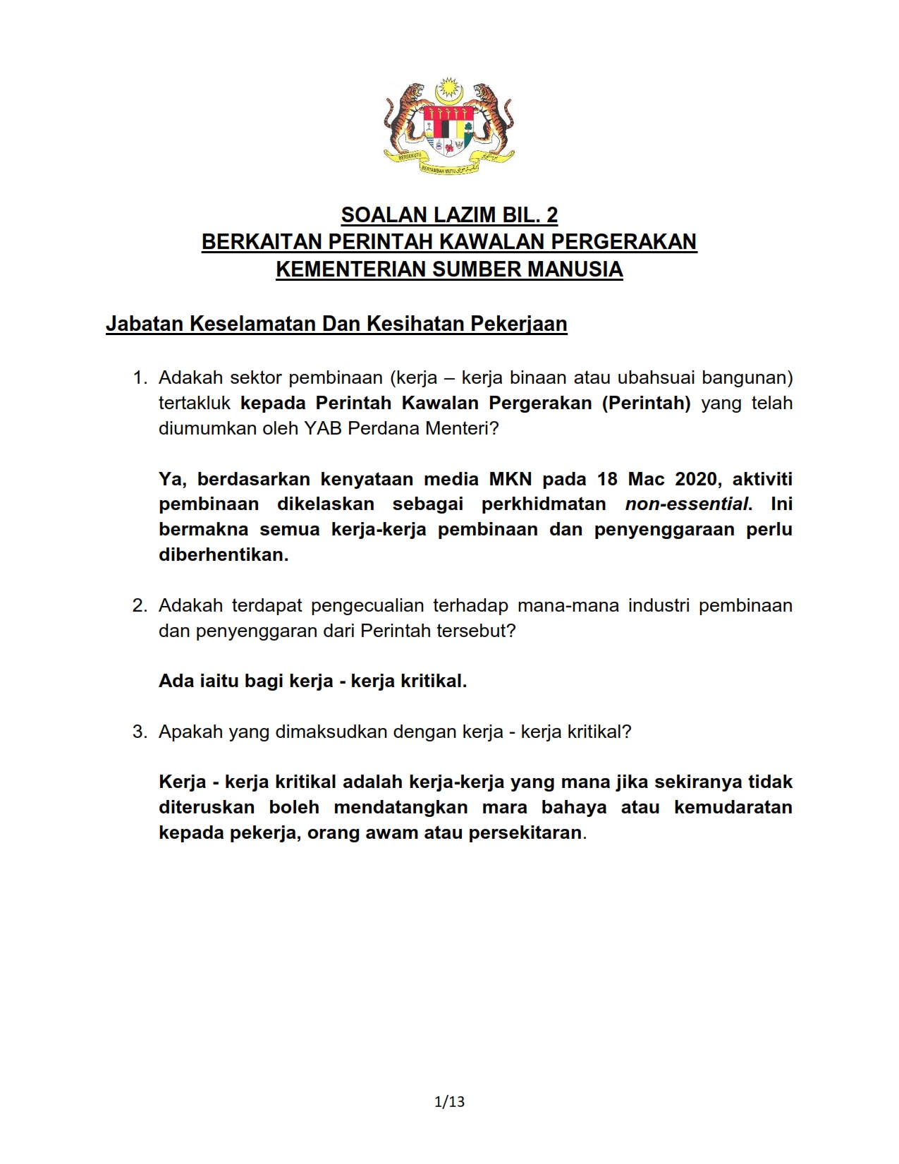 Soalan Lazim FAQ Berkaitan Perintah Kawalan Pergerakan Kementerian Sumber Manusia 23/03/2020 Aiman FAQ 23 Mac 2020 Jumlah paparan: 1679 Rating: ( 0 Rating ) Sila beri kadar Undi 1 Undi 2 Undi 3 Undi 4 Undi 5 /bencana2/images/ndcc/documents/covid19/faq/SIARAN_MEDIA_KKM_20200323_3.pdf Facebook Twitter Seterusnya Seterusnya