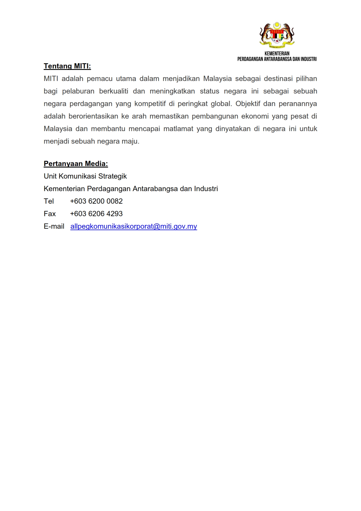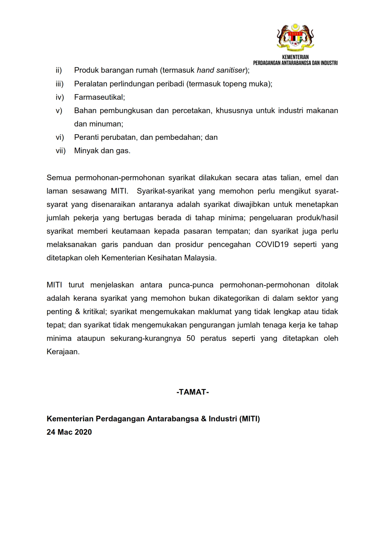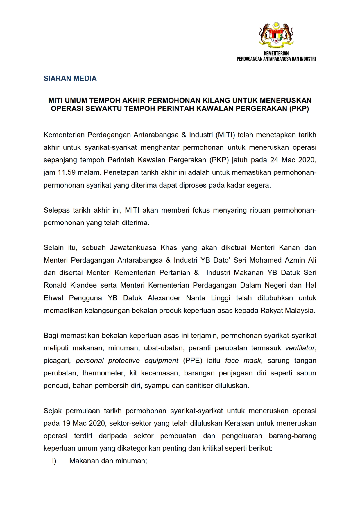 Siaran Media MITI 24/03/2020 Aiman Siaran Media 24 Mac 2020 Jumlah paparan: 846 Rating: ( 0 Rating ) Sila beri kadar Undi 1 Undi 2 Undi 3 Undi 4 Undi 5 Lihat / Muat Turun JPG Facebook Twitter Seterusnya Seterusnya