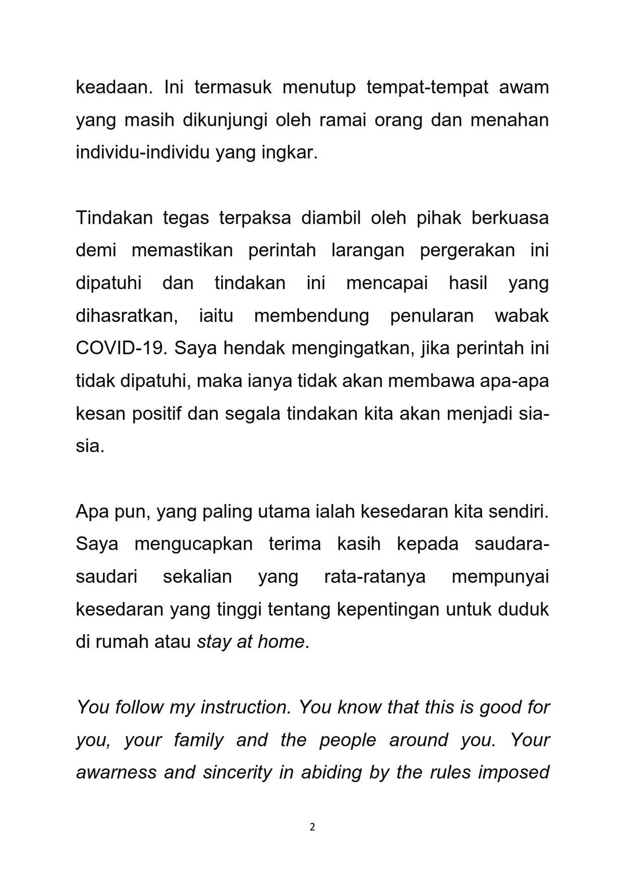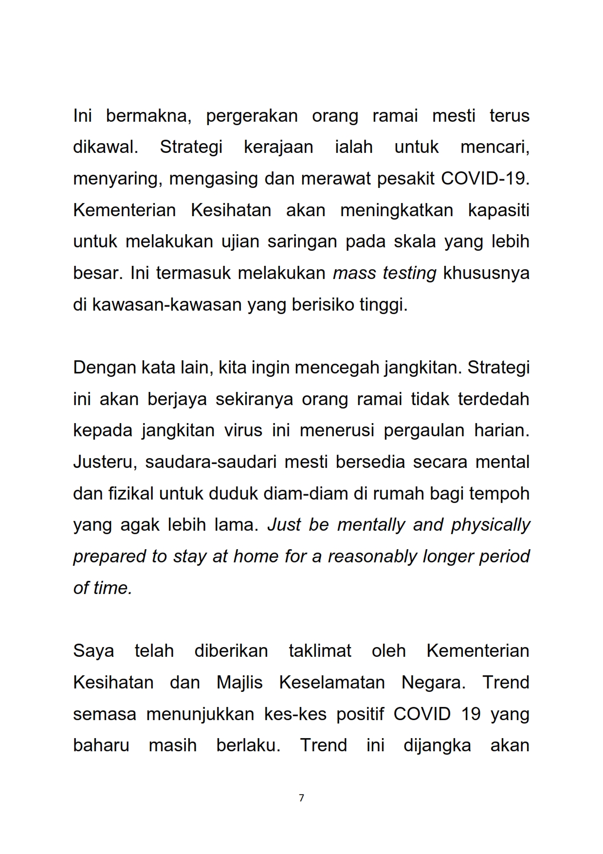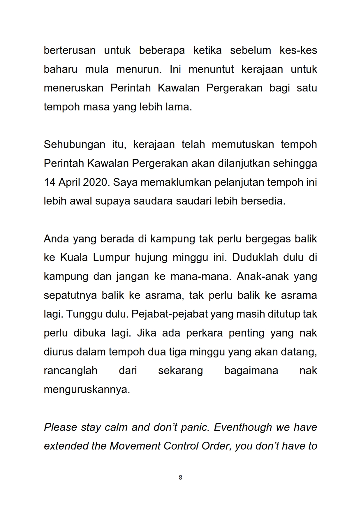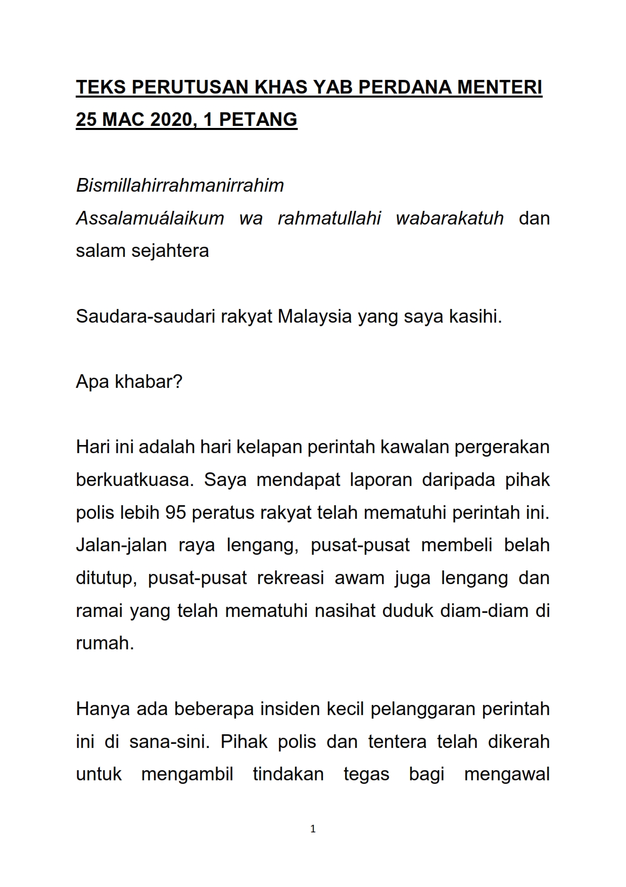 Perutusan Khas YAB Perdana Menteri Malaysia 25/03/2020 0100 PM Asrul Siaran Media 25 Mac 2020 Jumlah paparan: 1416 Rating: ( 0 Rating ) Sila beri kadar Undi 1 Undi 2 Undi 3 Undi 4 Undi 5 Lihat / Muat Turun PDF Facebook Twitter Seterusnya Seterusnya