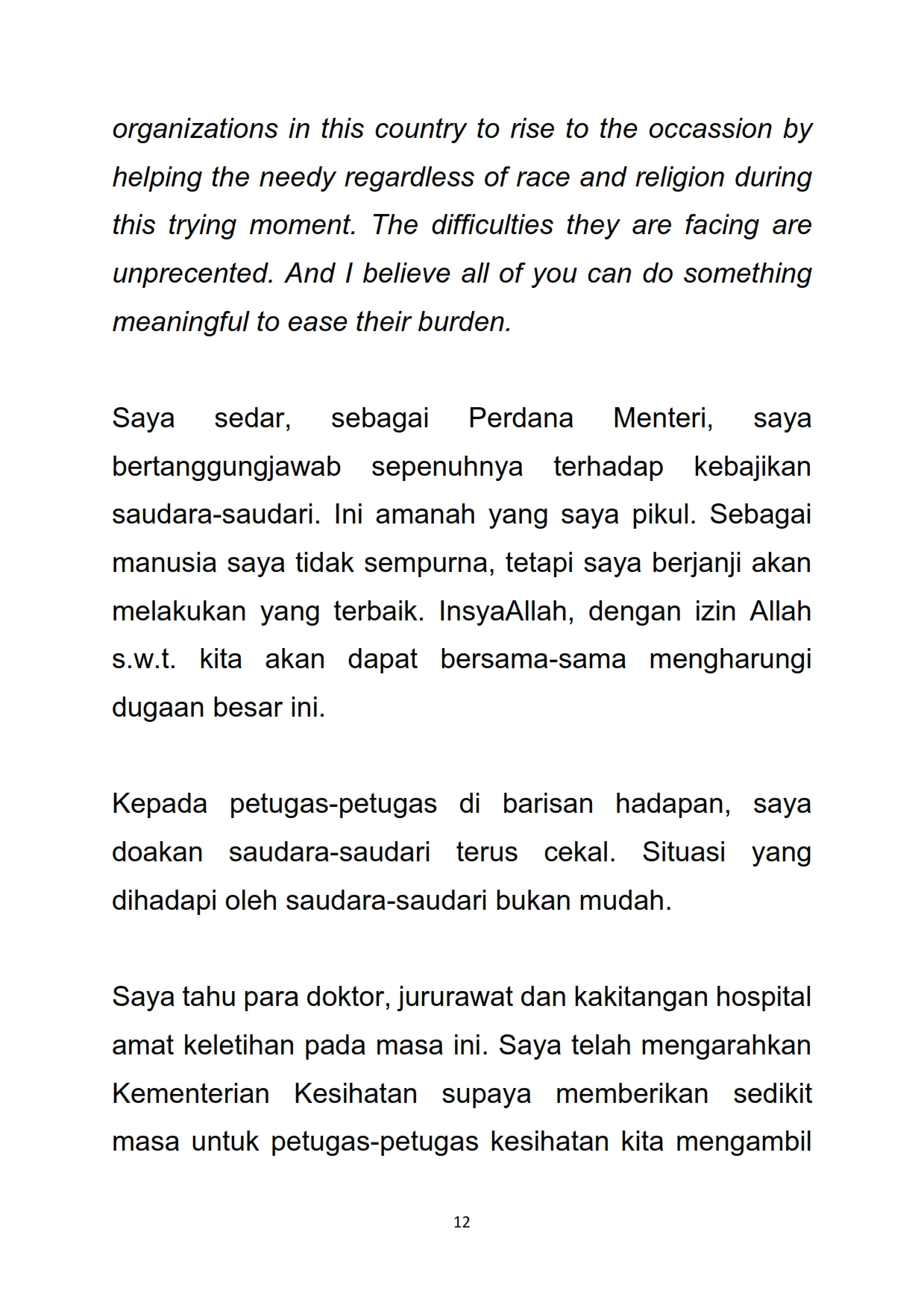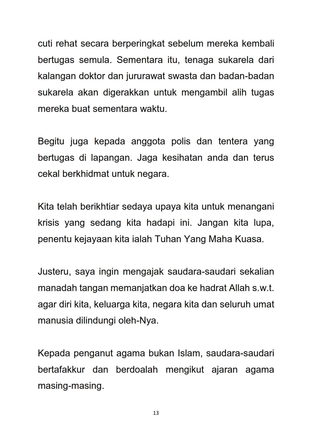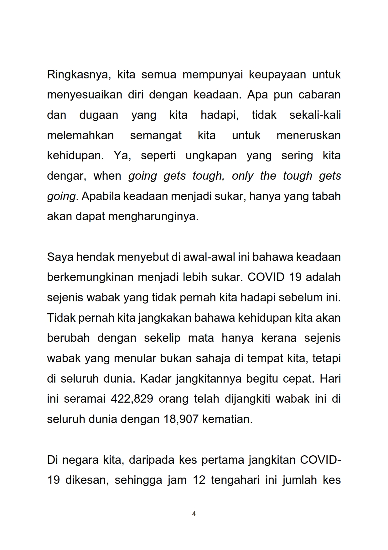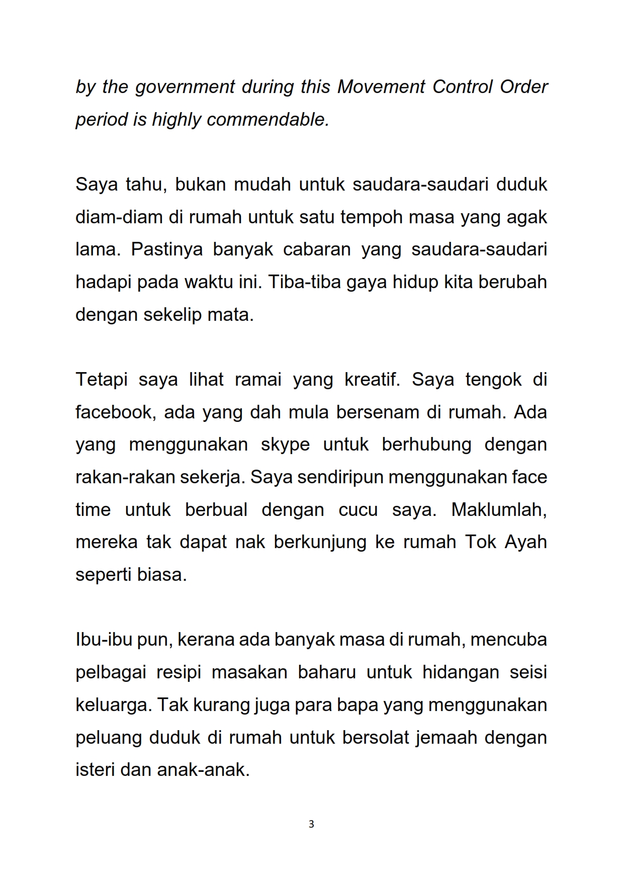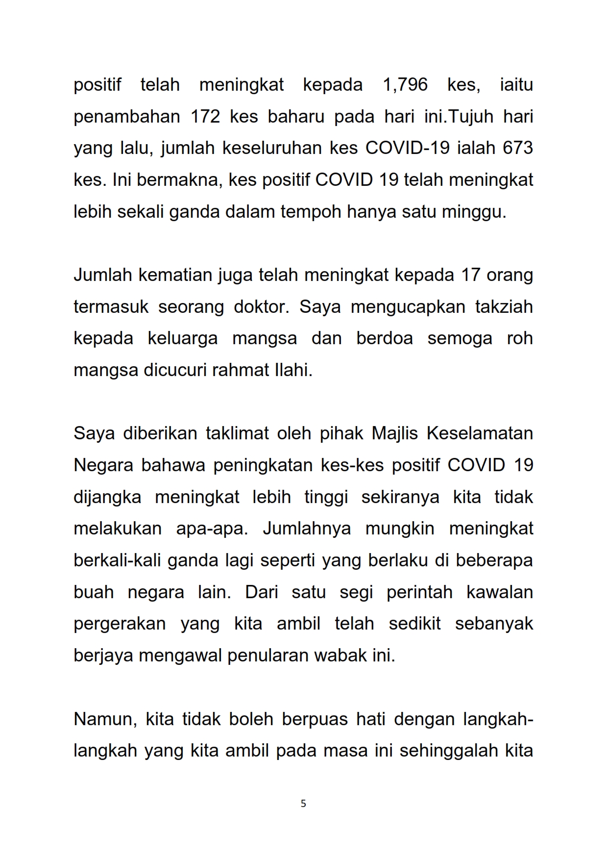 Perutusan Khas YAB Perdana Menteri Malaysia 25/03/2020 0100 PM Asrul Siaran Media 25 Mac 2020 Jumlah paparan: 1416 Rating: ( 0 Rating ) Sila beri kadar Undi 1 Undi 2 Undi 3 Undi 4 Undi 5 Lihat / Muat Turun PDF Facebook Twitter Seterusnya Seterusnya