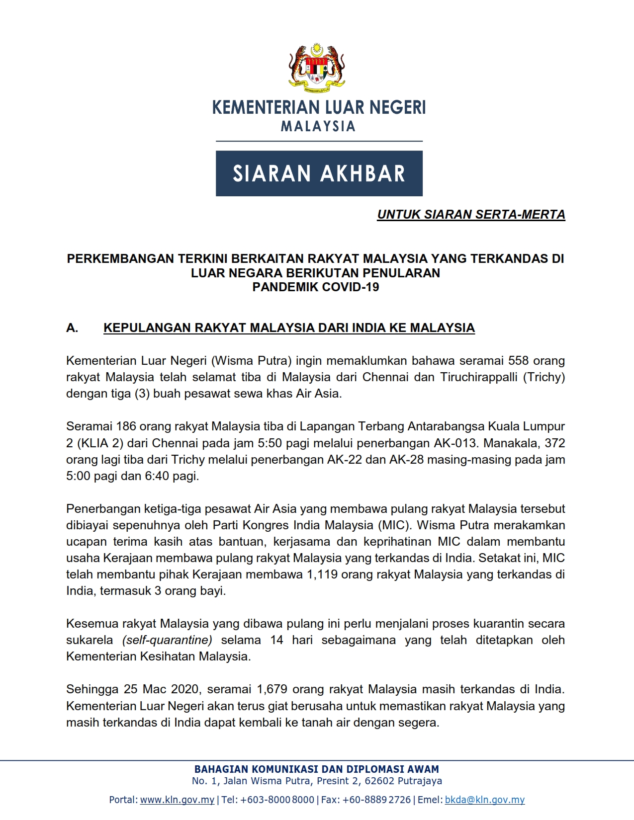 Siaran Akhbar Kementerian Dalam Negeri 25/03/2020 Aiman Siaran Media 25 Mac 2020 Jumlah paparan: 1141 Rating: ( 0 Rating ) Sila beri kadar Undi 1 Undi 2 Undi 3 Undi 4 Undi 5 Lihat / Muat Turun PDF Facebook Twitter Seterusnya Seterusnya