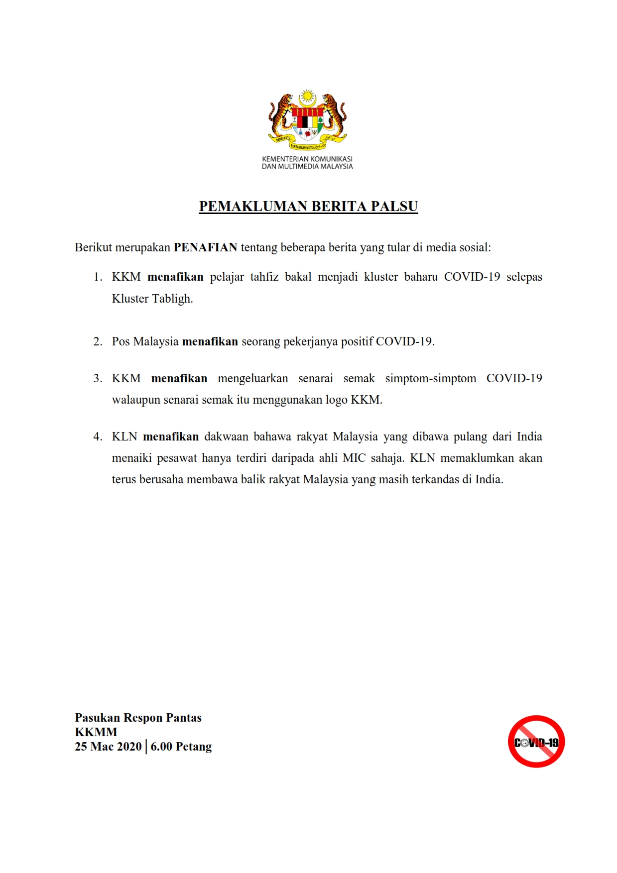 Pemakluman Berita Palsu Dari SKMM 25/03/2020 0600 PM Aiman Siaran Media 25 Mac 2020 Jumlah paparan: 1020 Rating: ( 0 Rating ) Sila beri kadar Undi 1 Undi 2 Undi 3 Undi 4 Undi 5 Lihat / Muat Turun PDF \ Facebook Twitter Seterusnya Seterusnya