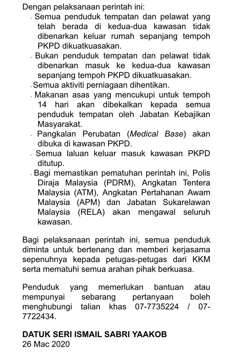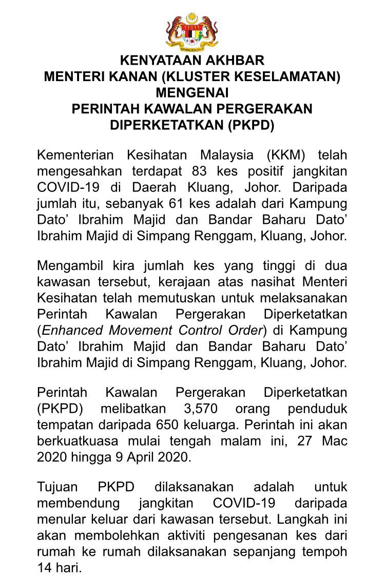 Kenyataan Akhbar Menteri Kanan (Kluster Keselamatan) Mengenai Perintah Kawalan Pergerakan Diperketatkan 26/03/2020 Aiman Siaran Media 26 Mac 2020 Jumlah paparan: 677 Rating: ( 0 Rating ) Sila beri kadar Undi 1 Undi 2 Undi 3 Undi 4 Undi 5 Lihat / Muat Turun JPG 1 Lihat / Muat Turun JPG 2 Facebook Twitter Seterusnya Seterusnya
