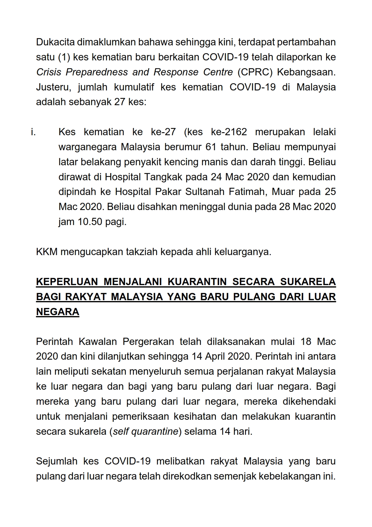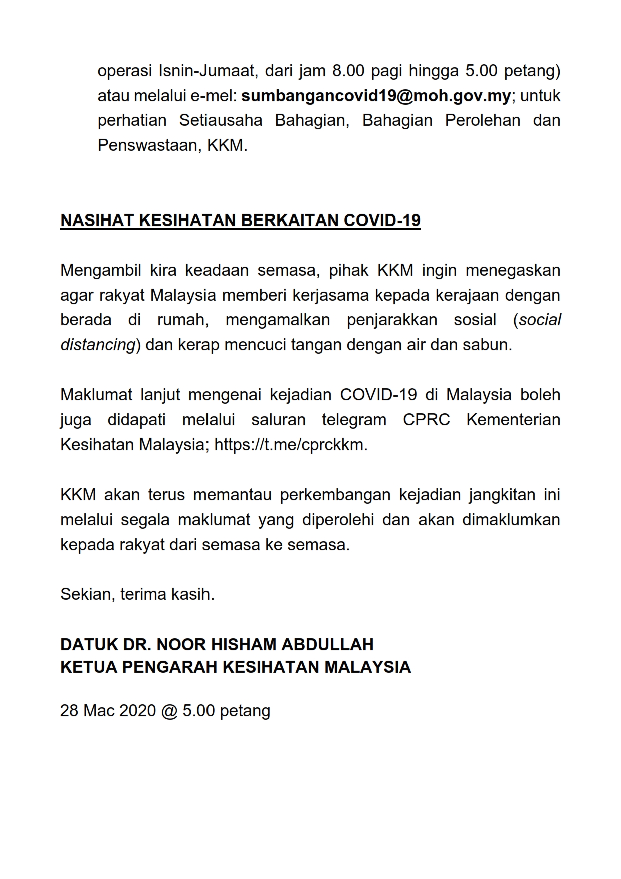 Kenyataan Akhbar KKM 28/03/2020 Aiman Siaran Media 28 Mac 2020 Jumlah paparan: 1025 Rating: ( 0 Rating ) Sila beri kadar Undi 1 Undi 2 Undi 3 Undi 4 Undi 5 Lihat / Muat Turun PDF Facebook Twitter Seterusnya Seterusnya