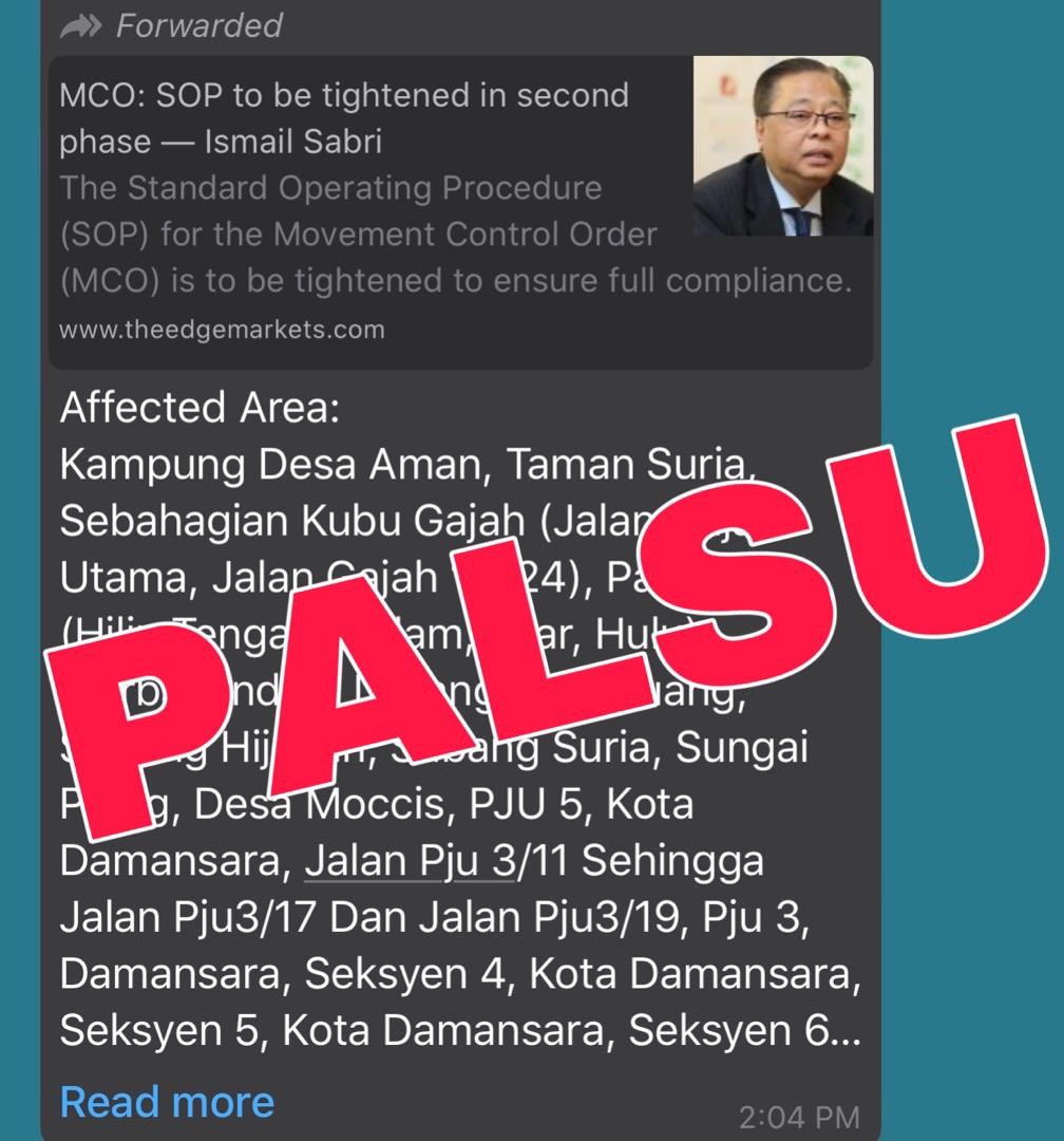 COVID-19 - Larangan Penyebaran Berita Palsu 29/03/2020 Asrul Nasihat 29 Mac 2020 Jumlah paparan: 1070 Rating: ( 0 Rating ) Sila beri kadar Undi 1 Undi 2 Undi 3 Undi 4 Undi 5 Lihat / Muat Turun JPG Facebook Twitter Seterusnya Seterusnya