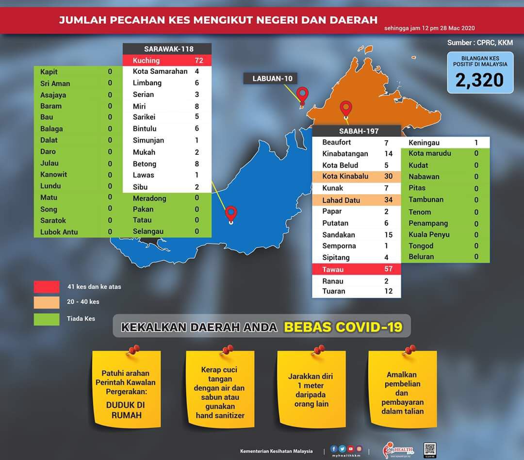 Statistik Pecahan Kes COVID-19 Mengikut Negeri & Daerah Di Malaysia 28/03/2020 1200 PM Asrul Siaran Media 28 Mac 2020 Jumlah paparan: 874 Rating: ( 0 Rating ) Sila beri kadar Undi 1 Undi 2 Undi 3 Undi 4 Undi 5 Lihat / Muat Turun JPG 1 Lihat / Muat Turun JPG 2 Facebook Twitter Seterusnya Seterusnya