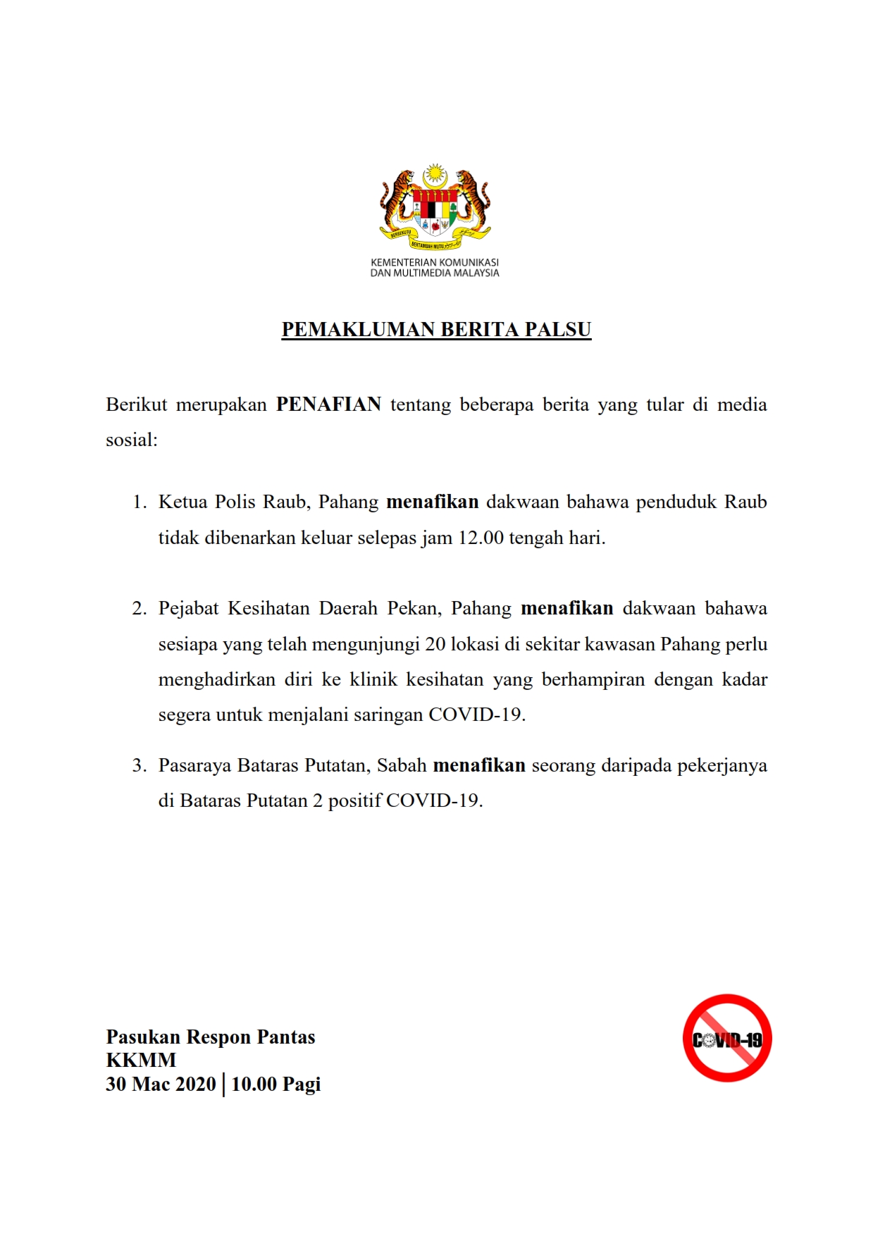 Pemakluman Berita Palsu Oleh SKMM 30/03/2020 1000 AM Asrul Siaran Media 30 Mac 2020 Jumlah paparan: 1211 Rating: ( 0 Rating ) Sila beri kadar Undi 1 Undi 2 Undi 3 Undi 4 Undi 5 Lihat / Muat Turun PDF Facebook Twitter Seterusnya Seterusnya