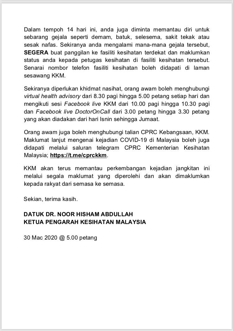 Kenyataan Media KP KKM 30/03/2020 0500 PM Asrul Siaran Media 30 Mac 2020 Jumlah paparan: 693 Rating: ( 0 Rating ) Sila beri kadar Undi 1 Undi 2 Undi 3 Undi 4 Undi 5 Facebook Twitter Seterusnya Seterusnya