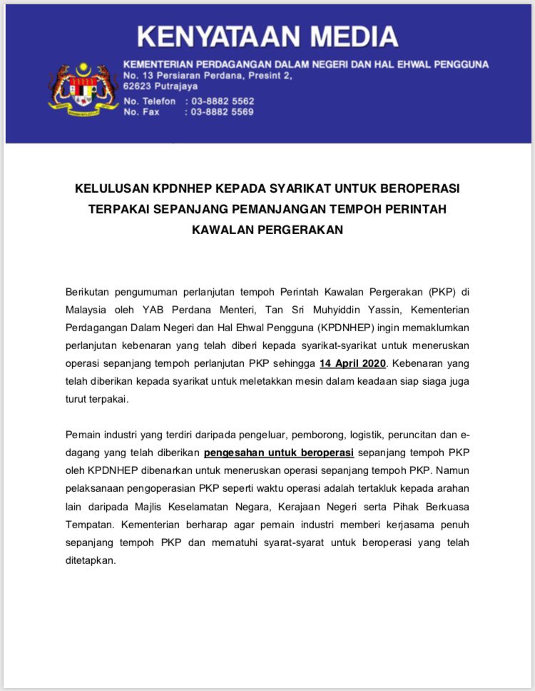 Kenyataan Media KPDNHEP 02/04/2020 Aiman Siaran Media 02 April 2020 Jumlah paparan: 823 Rating: ( 0 Rating ) Sila beri kadar Undi 1 Undi 2 Undi 3 Undi 4 Undi 5 Lihat / Muat Turun JPG Facebook Twitter Seterusnya Seterusnya