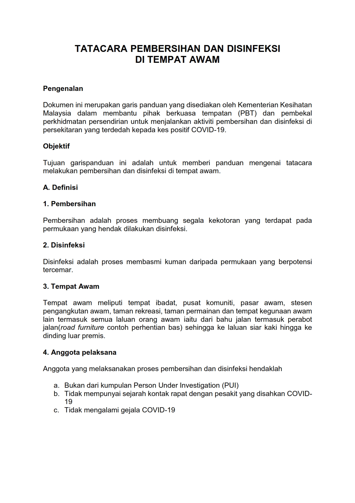 Tatacara Pembersihan Dan Disinfeksi Di Tempat Awam 03/04/2020 Aiman Siaran Media 03 April 2020 Jumlah paparan: 1555 Rating: ( 0 Rating ) Sila beri kadar Undi 1 Undi 2 Undi 3 Undi 4 Undi 5 Lihat / Muat Turun PDF Facebook Twitter Seterusnya Seterusnya