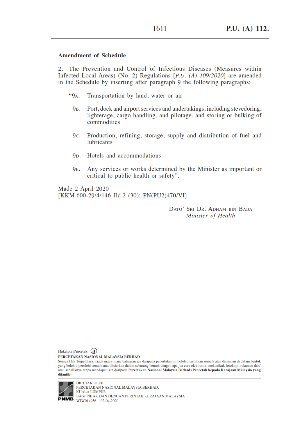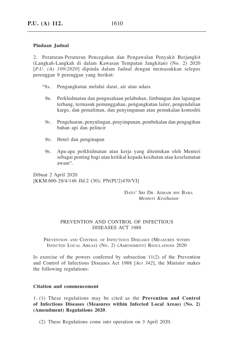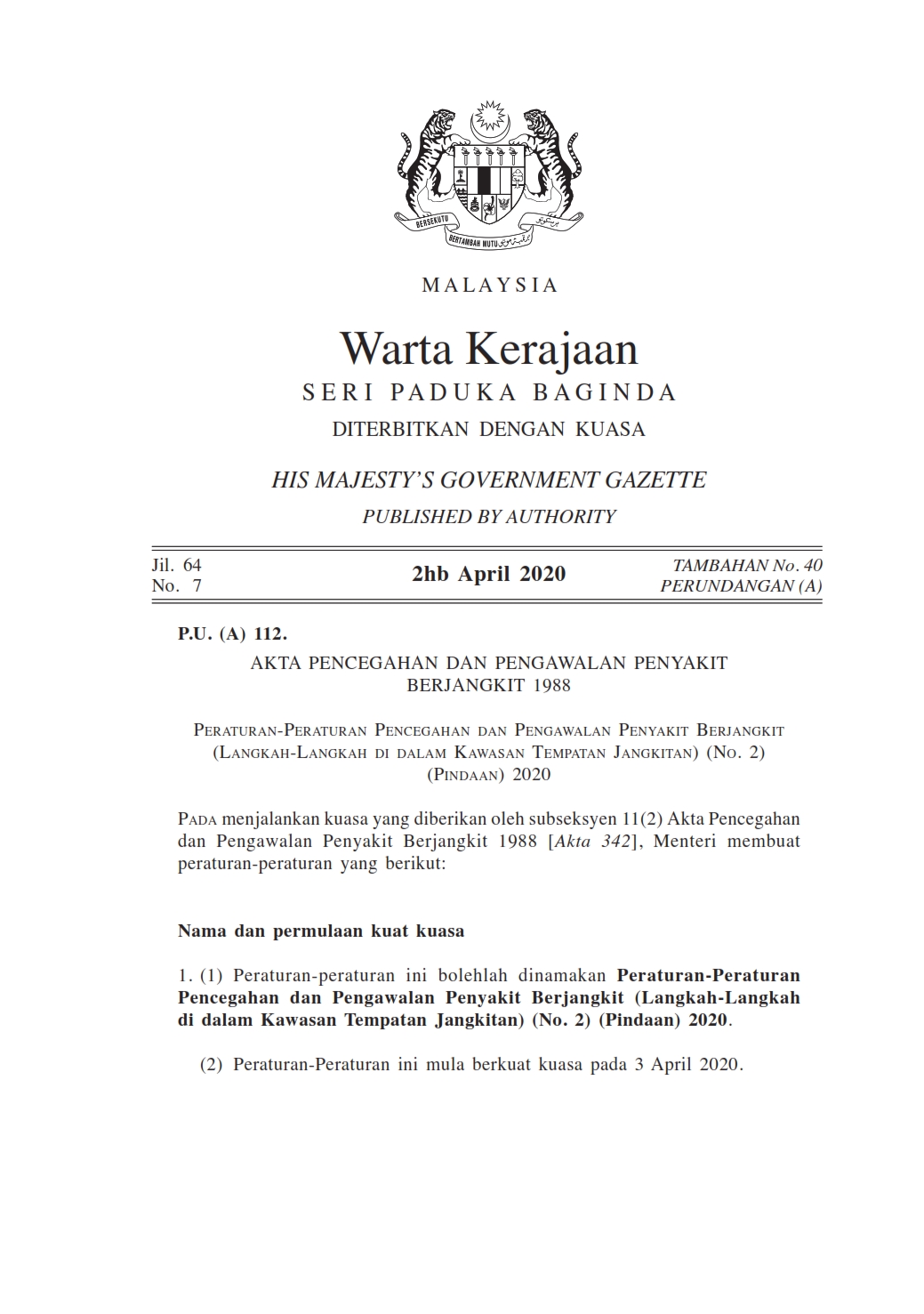 Warta Kerajaan: Akta Pencegahan Dan Pengawalan Penyakit Berjangkit 1988 02/04/2020 Aiman Siaran Media 02 April 2020 Jumlah paparan: 1794 Rating: ( 0 Rating ) Sila beri kadar Undi 1 Undi 2 Undi 3 Undi 4 Undi 5 Lihat / Muat Turun PDF Facebook Twitter Seterusnya Seterusnya