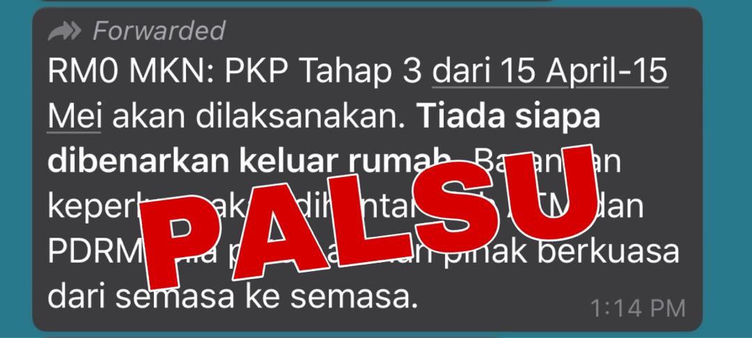 COVID-19 - Larangan Penyebaran Berita Palsu 03/04/2020 Asrul Nasihat 03 April 2020 Jumlah paparan: 792 Rating: ( 0 Rating ) Sila beri kadar Undi 1 Undi 2 Undi 3 Undi 4 Undi 5 Lihat / Muat Turun JPG 1 Lihat / Muat Turun JPG 2 Facebook Twitter Seterusnya Seterusnya