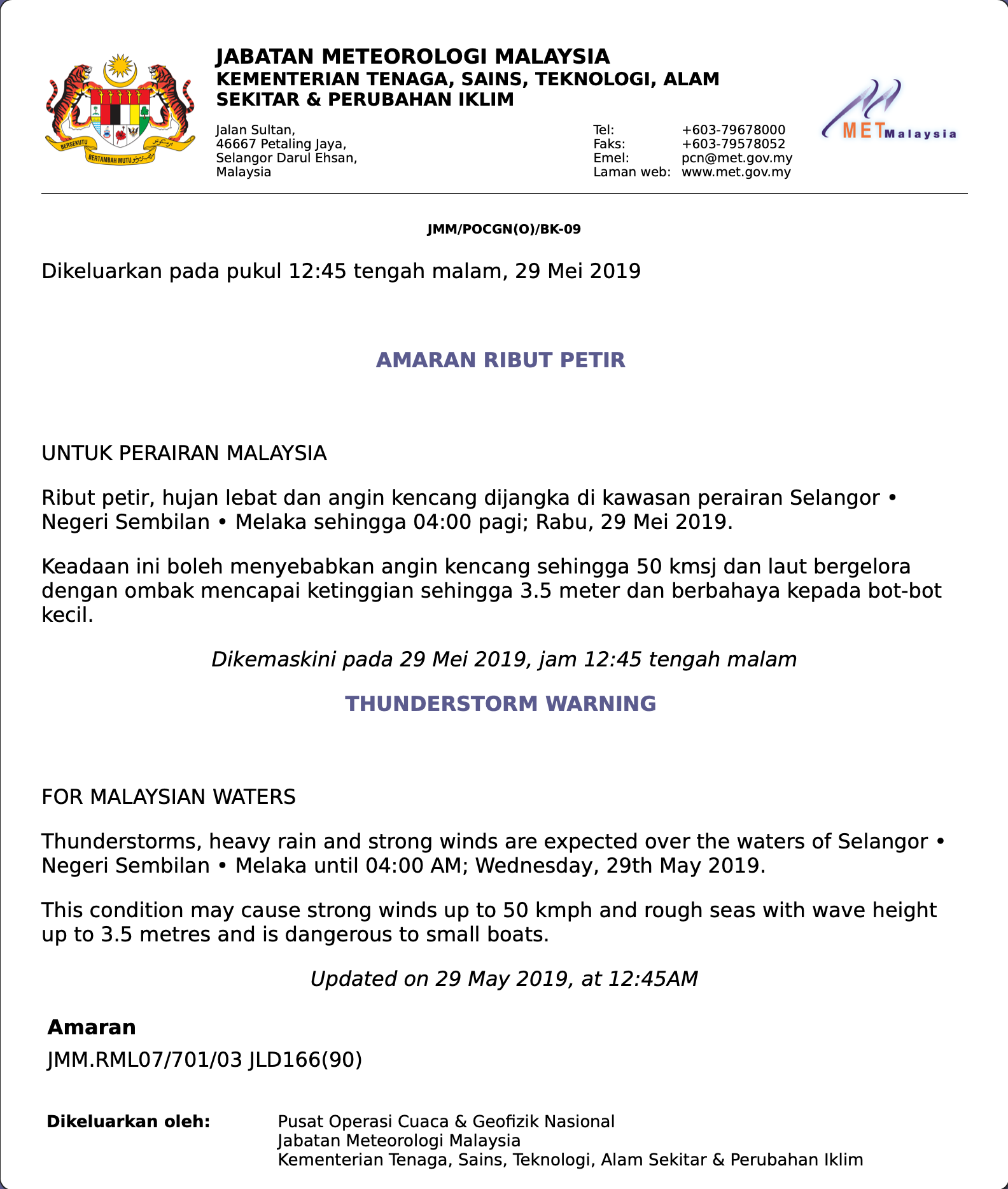 Amaran Ribut Petir 29/05/2019 Azmin Cuaca 29 Mei 2019 Jumlah paparan: 699 Rating: ( 0 Rating ) Sila beri kadar Undi 1 Undi 2 Undi 3 Undi 4 Undi 5 Lihat / Muat Turun Facebook Twitter Seterusnya Seterusnya