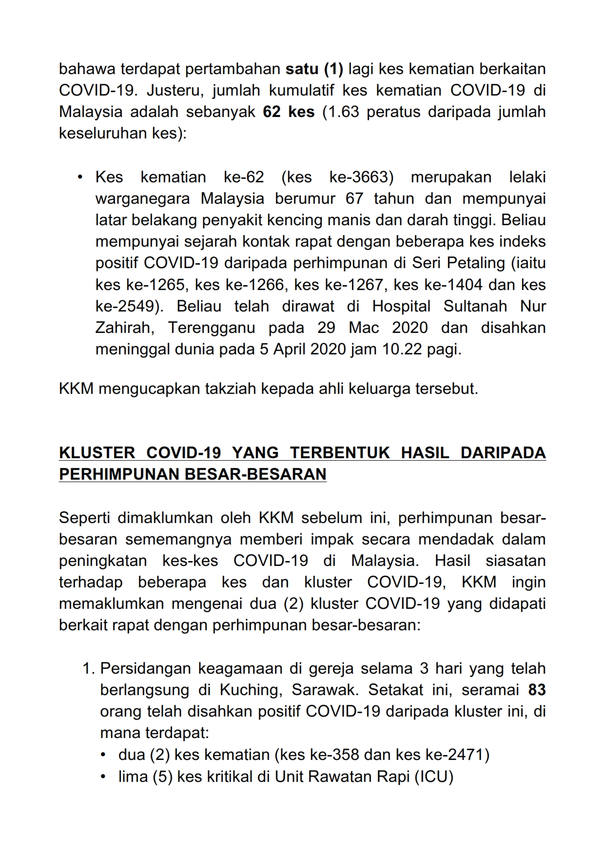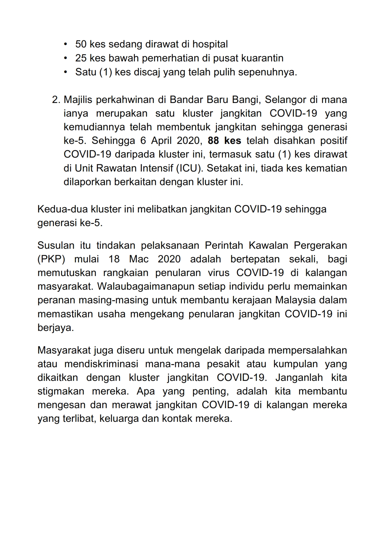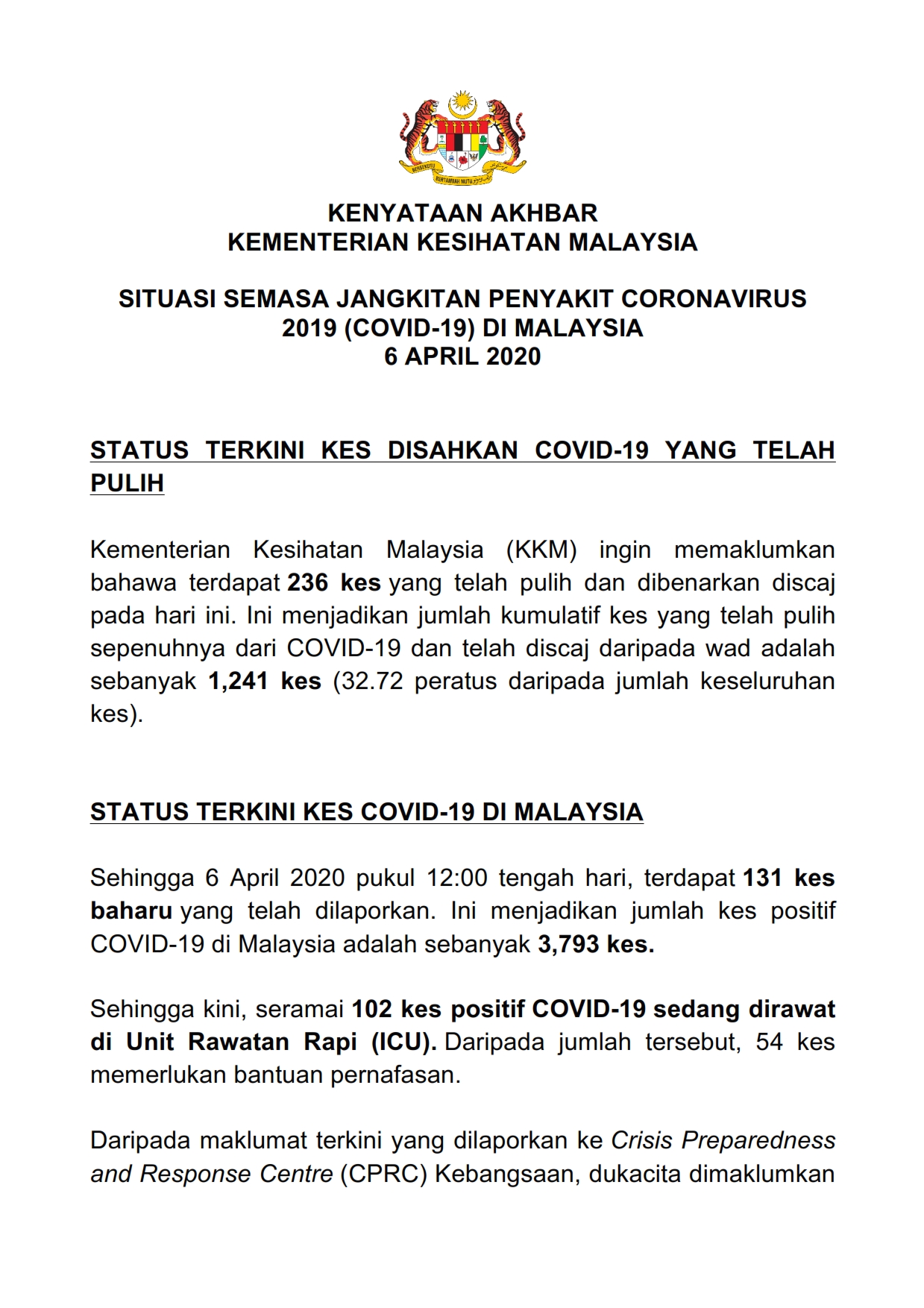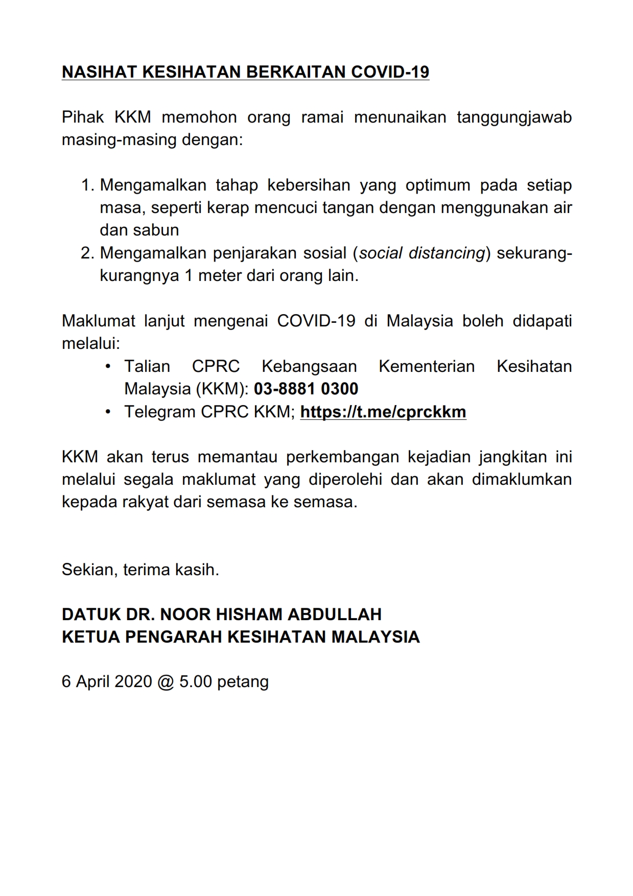 Kenyataan Akhbar KP KKM 06/04/2020 0500 PM Aiman Siaran Media 06 April 2020 Jumlah paparan: 700 Rating: ( 0 Rating ) Sila beri kadar Undi 1 Undi 2 Undi 3 Undi 4 Undi 5 Lihat / Muat Turun PDF Facebook Twitter Seterusnya Seterusnya
