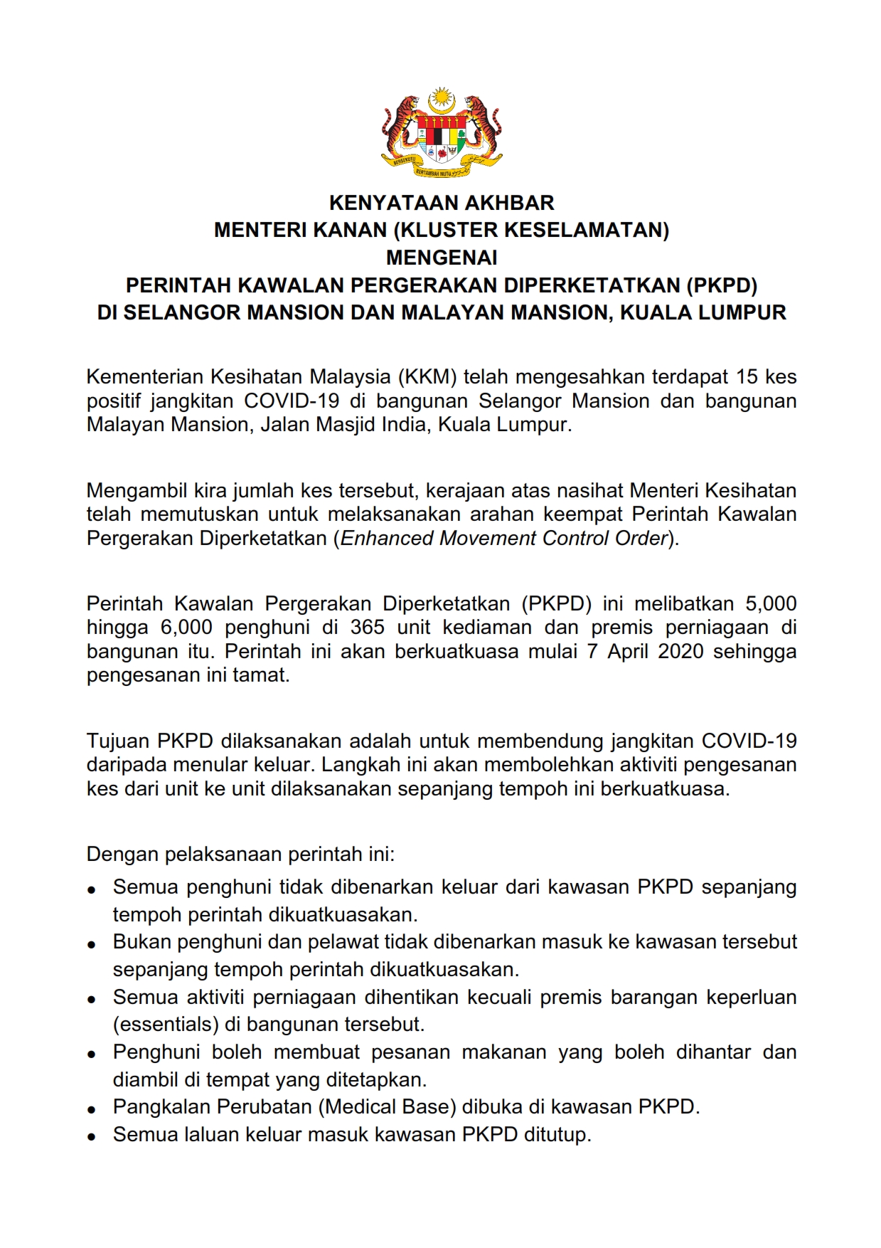 Kenyataan Akhbar Menteri Kanan (Kluster Keselamatan) Mengenai PKPD 07/04/2020 Aiman Siaran Media 07 April 2020 Jumlah paparan: 1193 Rating: ( 0 Rating ) Sila beri kadar Undi 1 Undi 2 Undi 3 Undi 4 Undi 5 /bencana2/images/ndcc/documents/covid19/siaranmedia/SIARAN_MEDIA_20200407_06.pdf Facebook Twitter Seterusnya Seterusnya