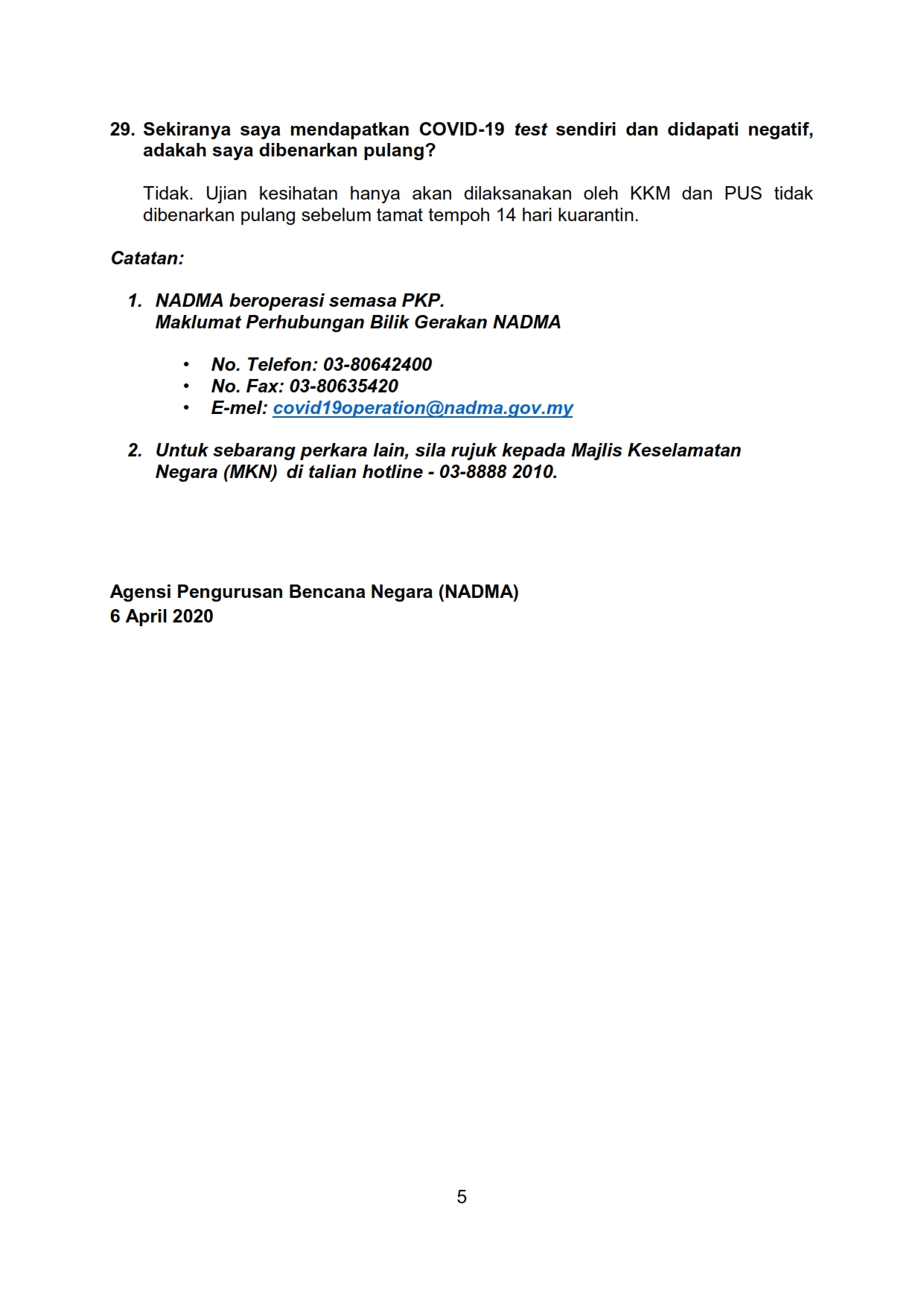 FAQ - Berkaitan Perintah Kawalan Pergerakan NADMA 06/04/2020 Aiman FAQ 07 April 2020 Jumlah paparan: 1680 Rating: ( 0 Rating ) Sila beri kadar Undi 1 Undi 2 Undi 3 Undi 4 Undi 5 /bencana2/images/ndcc/documents/covid19/faq/SIARAN_MEDIA_KKM_20200407_08.pdf Facebook Twitter Seterusnya Seterusnya