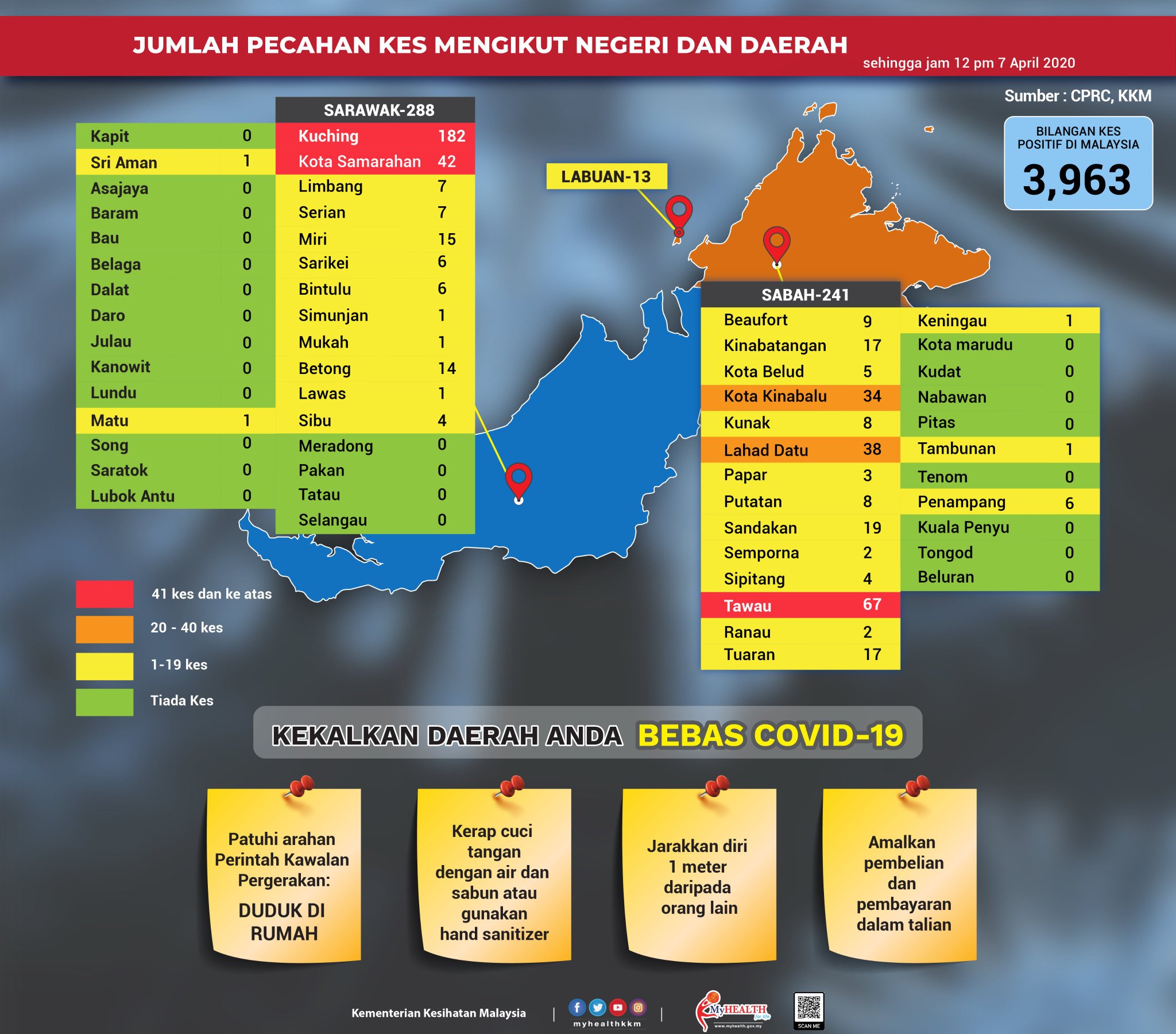 Statistik Pecahan Kes COVID-19 Mengikut Negeri & Daerah Di Malaysia 07/04/2020 1200 PM Asrul Siaran Media 08 April 2020 Jumlah paparan: 1318 Rating: ( 0 Rating ) Sila beri kadar Undi 1 Undi 2 Undi 3 Undi 4 Undi 5 Lihat / Muat Turun JPG 1 Lihat / Muat Turun JPG 2 Facebook Twitter Seterusnya Seterusnya