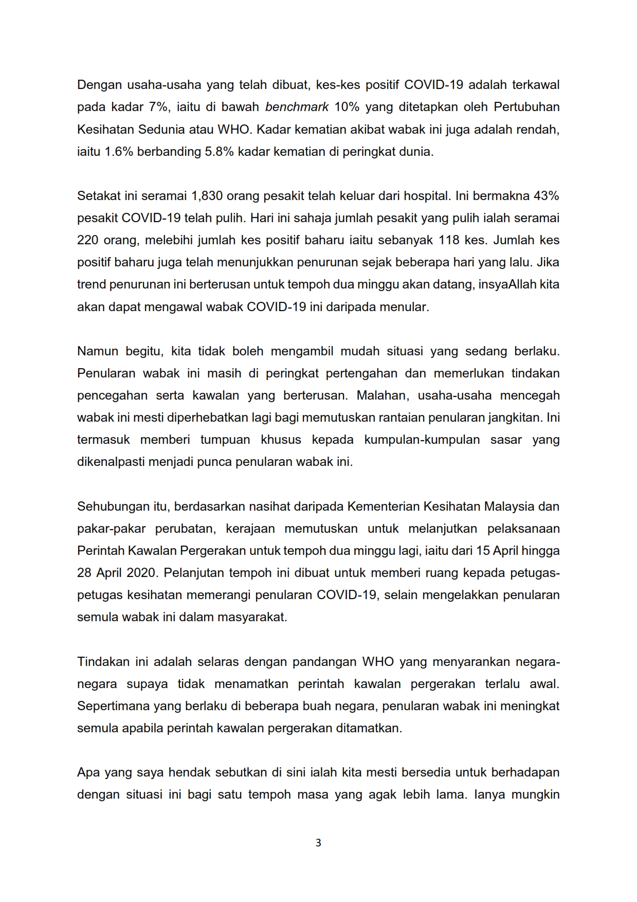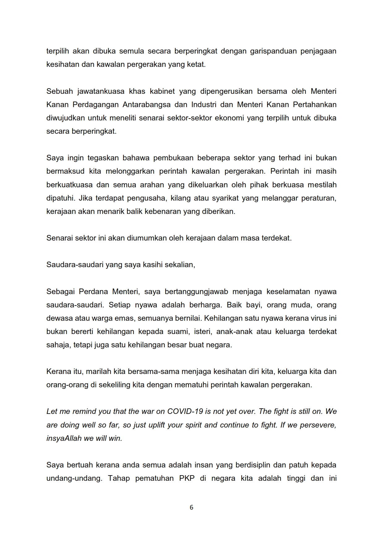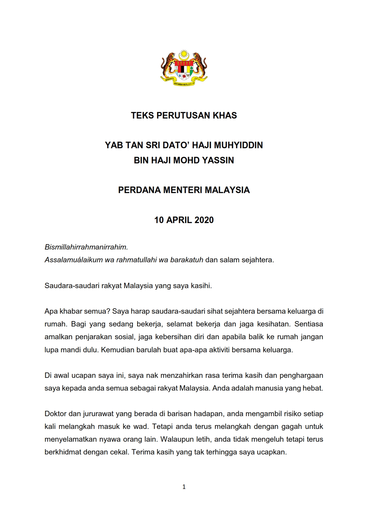 Teks Ucapan Perdana Menteri 10/04/2020 Aiman Siaran Media 10 April 2020 Jumlah paparan: 1544 Rating: ( 0 Rating ) Sila beri kadar Undi 1 Undi 2 Undi 3 Undi 4 Undi 5 Lihat / Muat Turun PDF Facebook Twitter Seterusnya Seterusnya