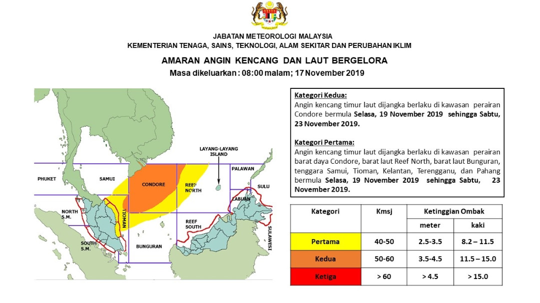 Amaran Angin Kencang dan Laut Bergelora 17/11/2019 0800 PM Asrul Angin 17 November 2019 Jumlah paparan: 828 Rating: ( 0 Rating )